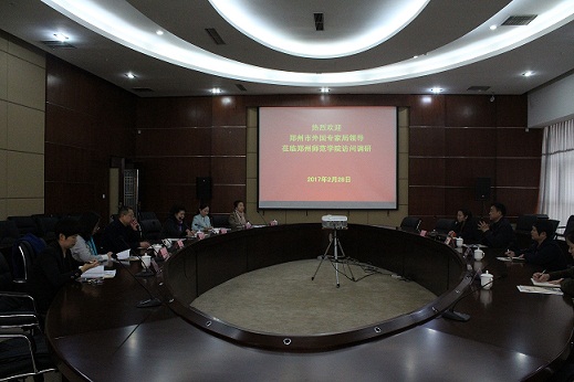 2月28日上午,郑州市外国专家局副局长李金岭、市外专局专家和项目管理处处长张晓燕一行莅临我校调研指导工作。副校长蒋丽珠接待领导、专家一行并在图书馆十楼会议室进行了座谈。我校国际合作与交流处、外国语学院有关部门和单位负责人参加了座谈会。副校长蒋丽珠主持会谈。