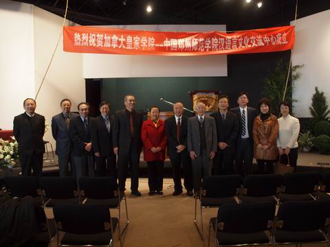 2011年11月1日上午,在国际教育学院近半年的努力工作下,我校海外孔子学院建设取得了突破性进展,第一个海外机构“加拿大皇家学院—中国郑州师范学院汉语言文化交流中心”正式挂牌成立。于向英书记专程赴加拿大温哥华,与加拿大皇家学院院长孔德谅一起共同主持参与了该汉语言文化中心的成立仪式。