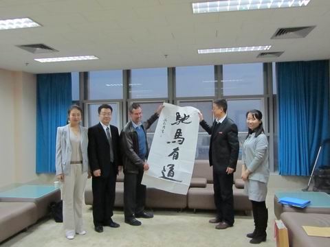 2011年11月1日下午,美国绿河社区学院(GREEN RIVER COMMUNITY COLLEGE)的执行董事Ross Jennings博士一行四人来我校考察交流。在国际教育学院相关工作人员的陪同下,Ross Jennings博士一行参观了我校校园、图书馆和校展室,对我校悠久的办学历史、深厚的文化底蕴和优美的育人环境赞叹不已。17:00,校党委副书记孔青与进行了会谈,双方就开展合作、交流等问题进行了磋商。
