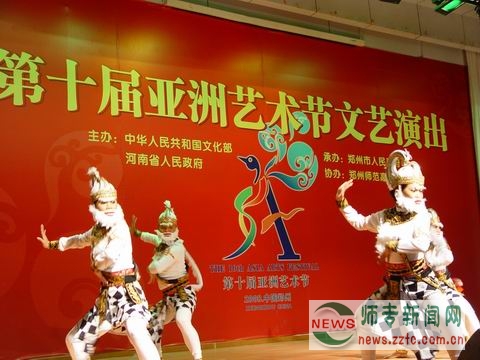 由文化部、河南省人民政府主办,郑州市人民政府承办的第十届亚洲艺术节于2009年9月26日日在郑州拉开帷幕。27~29日晚,参加艺术节演出的巴基斯坦、印尼和柬埔寨艺术团在我校7号楼报告厅进行了三场访问演出。