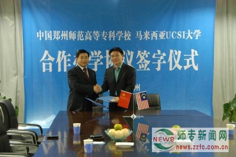 上午9:30,赵校长在图书馆八楼会议室亲切接见了Moses Ling Wei校长,双方就教育合作模式、教学理念以及外教聘请等问题进行了磋商,并签订了两校合作办学协议。随后,Moses Ling Wei校长与外语系、中文系主任等探讨了新闻采编与制作专业的课程设置及马来西亚UCSI大学大众传媒专业学分互认等相关问题。