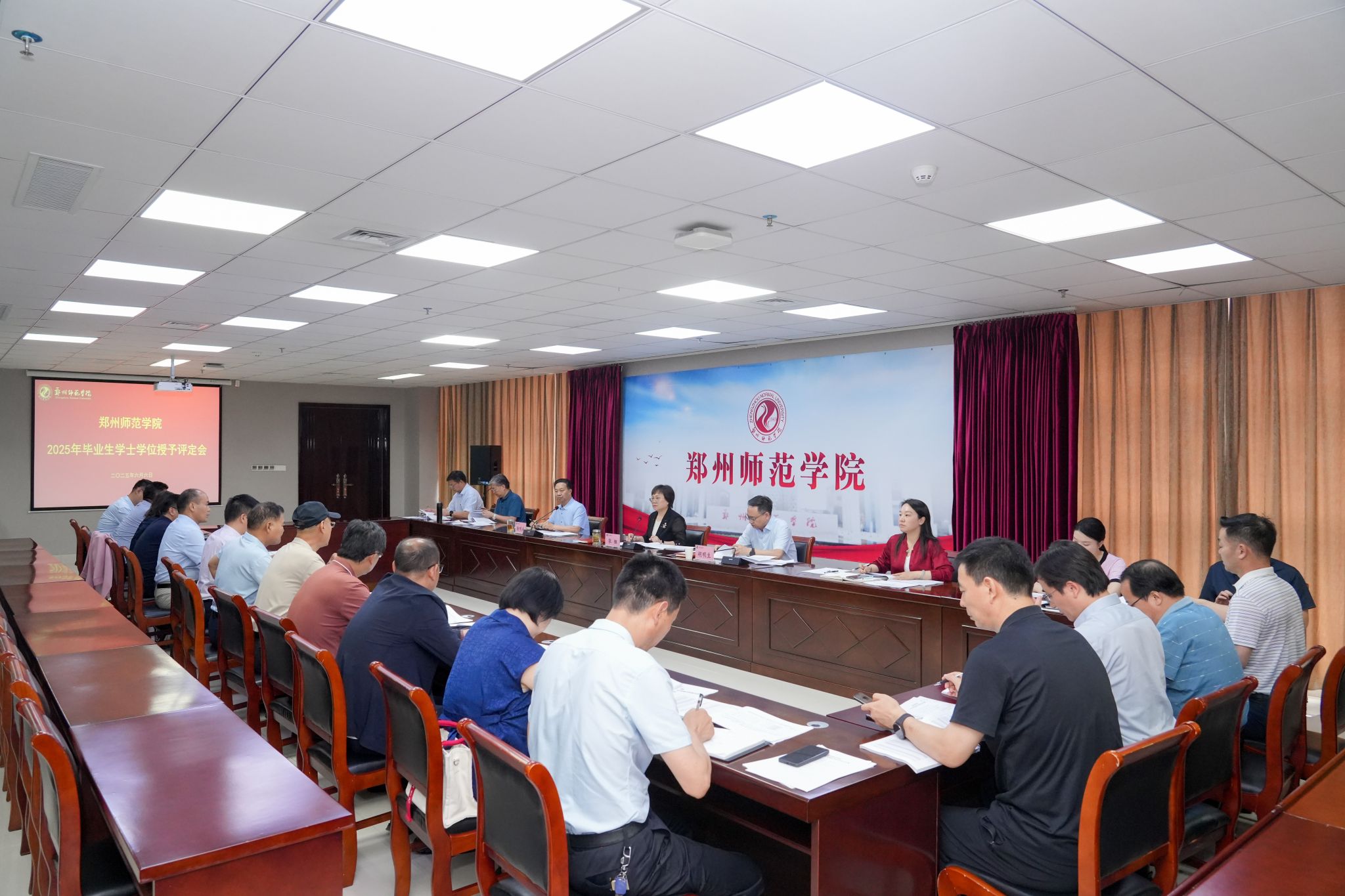 6月6日下午,郑州师范学院2025年本科毕业生学士学位授予评定会议在综合楼十二楼第一会议室召开,校学位评定委员会委员参加会议,评定会由校学位评定委员会主席张铟主持。