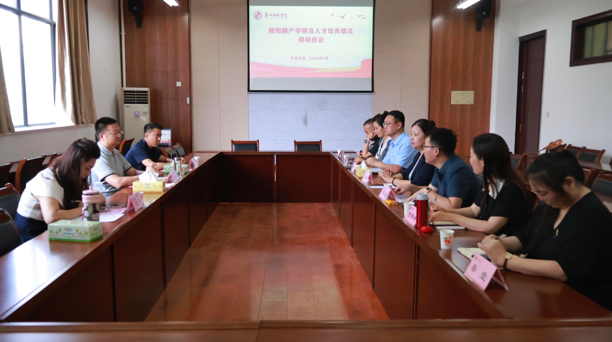6月11日下午,二七区党组成员、副区长王森涛率队赴我校传播学院专题调研微短剧产学研合作与人才培养情况。郑州师范学院副校长范红娟出席调研座谈,传播学院领导班子及行业专家代表、郑州日新阅益文化传播有限公司董事长侯超参加座谈。