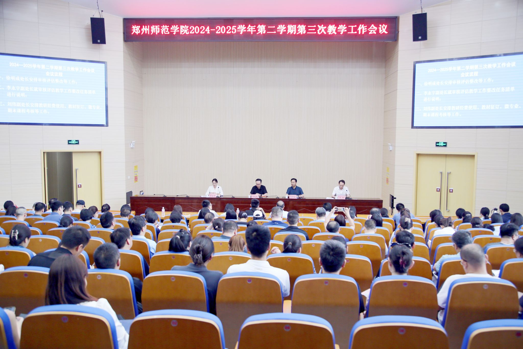 6月17日下午,学校在嵩山学堂第一报告厅召开2024-2025学年度第二学期第三次教学工作会议。各教学单位院长、教学副院长、教学办公室主任及基层教学组织负责人,公共艺术教学部、语委办公室、教学质量监测与评估中心、教师教育技能综合训练中心副处级以上干部,教务处、督导组全体人员参加了此次会议。胡明生副校长出席会议,教务处负责人主持会议。