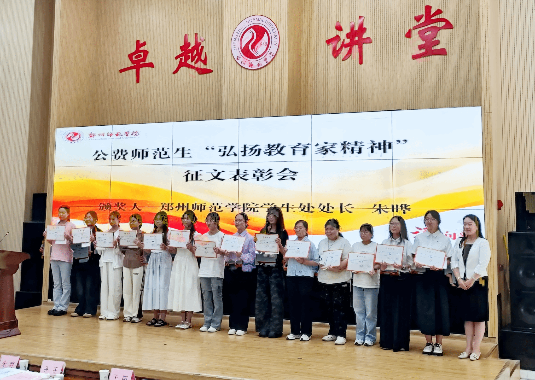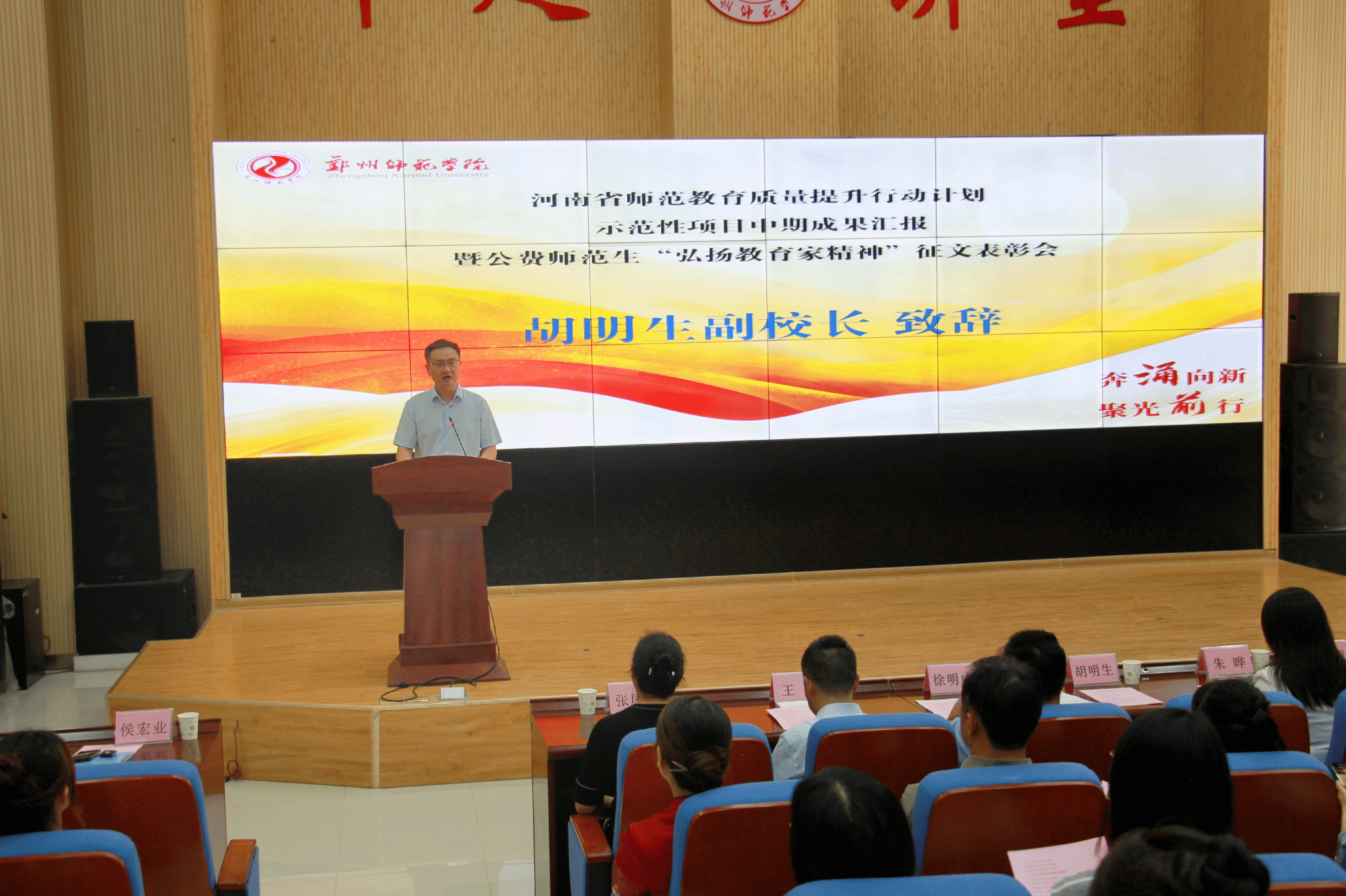6月20日下午,郑州师范学院初等教育学院承担的河南省“师范教育质量提升行动计划”示范性项目“UGS协同育人培养机制研究”“卓越教师—师范生成长工作坊”项目中期成果汇报暨公费师范生“弘扬教育家精神”征文比赛表彰会在“卓越讲堂”成功举办。副校长胡明生、教务处、学生处负责人、教育学部部务委员会成员以及来自基础教育一线近20所名校的名师和我校师生齐聚一堂,共同回顾项目实施一年来的建设成就。