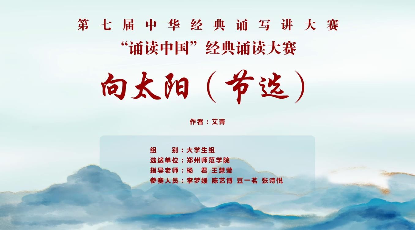 此前河南省教育厅公布的《第七届中华经典诵写讲大赛(河南赛区)“诵读中国”经典诵读大赛评选结果的公示》中,我校2025年选送的教师组作品《我从一滴汗水里看到了未来》《我的老师》,大学生组作品《向太阳》《读中国》,均获省赛一等奖,前三个作品被推荐参加全国比赛。
