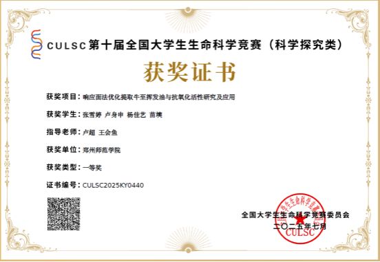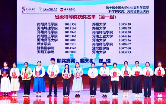 近日,第十届全国大学生生命科学竞赛(科学探究类)圆满落幕。经过激烈比拼,我校学子以出色的科研素养和创新能力脱颖而出,荣获河南省特等奖及全国一等奖,实现我校在该项赛事中的新突破!