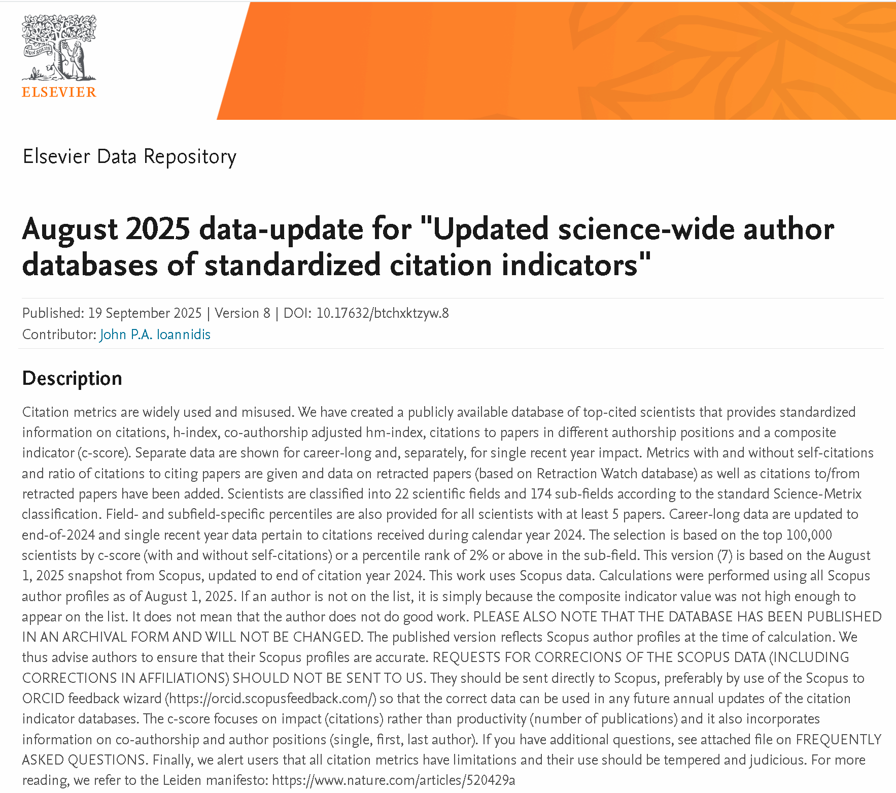 榜单链接:https://elsevier.digitalcommonsdata.com/datasets/btchxktzyw/8