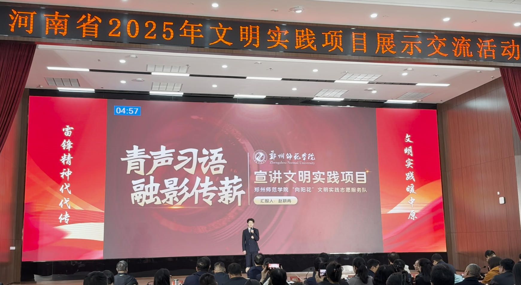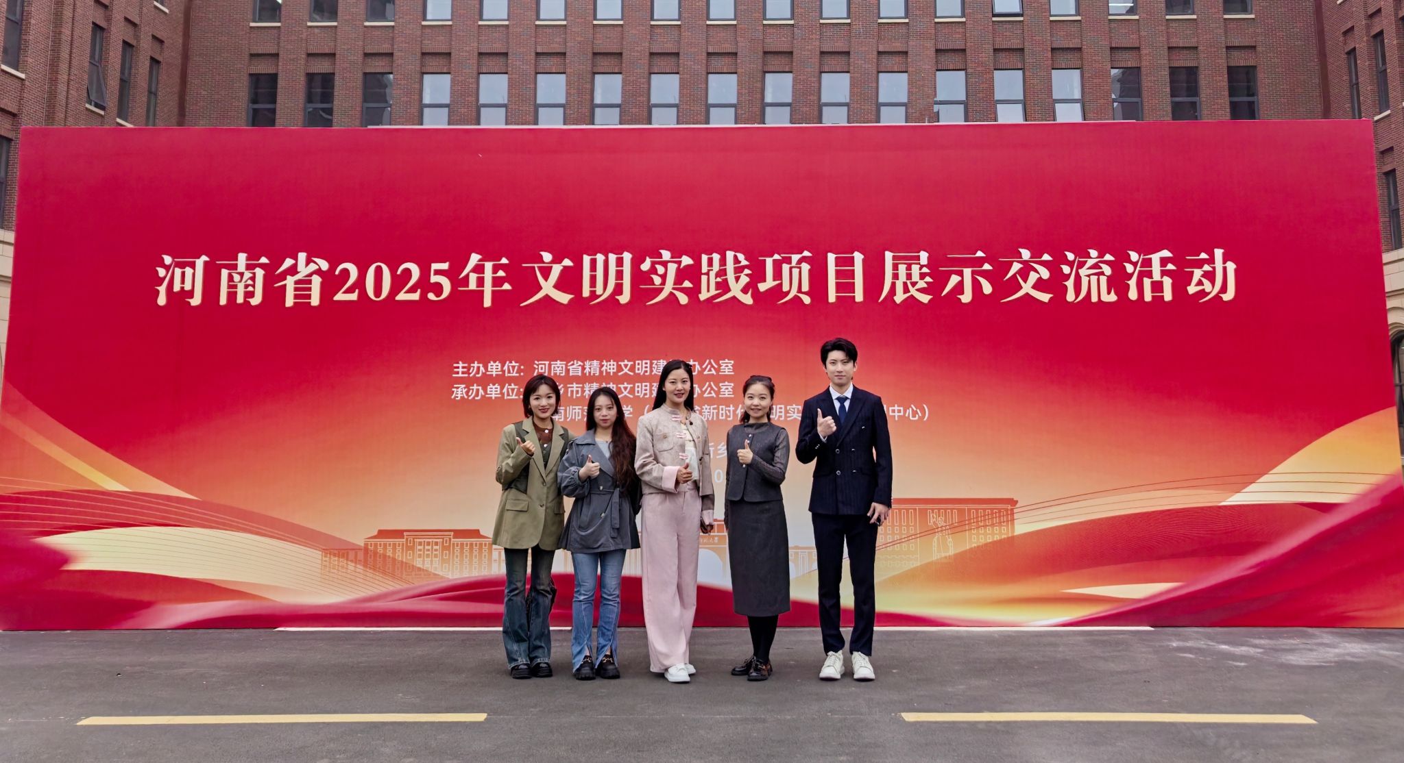 近日,由河南省文明办主办的河南省2025年文明实践项目展示交流活动在河南师范大学顺利举行。经过两轮评审,我校“青声习语 融影传薪”宣讲文明实践项目从进入终审现场展示的60个参赛项目中脱颖而出,喜获一类项目。