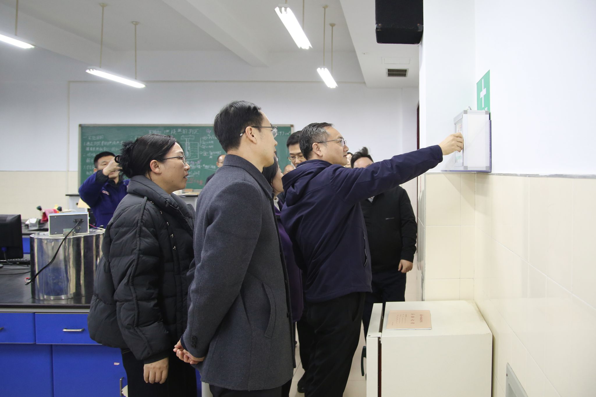 在公共教学场所方面,检查组重点察看教室、走廊、楼道等区域的基础环境保障情况,详细检查了安全出口和疏散通道是否畅通、应急照明和疏散指示标识是否完善、电气线路是否规范、安全警示标识是否醒目等。在实验室方面,检查组围绕实验室分级分类管理、危险化学品储存与使用、特种设备操作规范、安全标识设置、应急消防设施配置与维护等情况进行了逐项检查,并查阅了安全准入、日常巡查和隐患整改台账等资料。