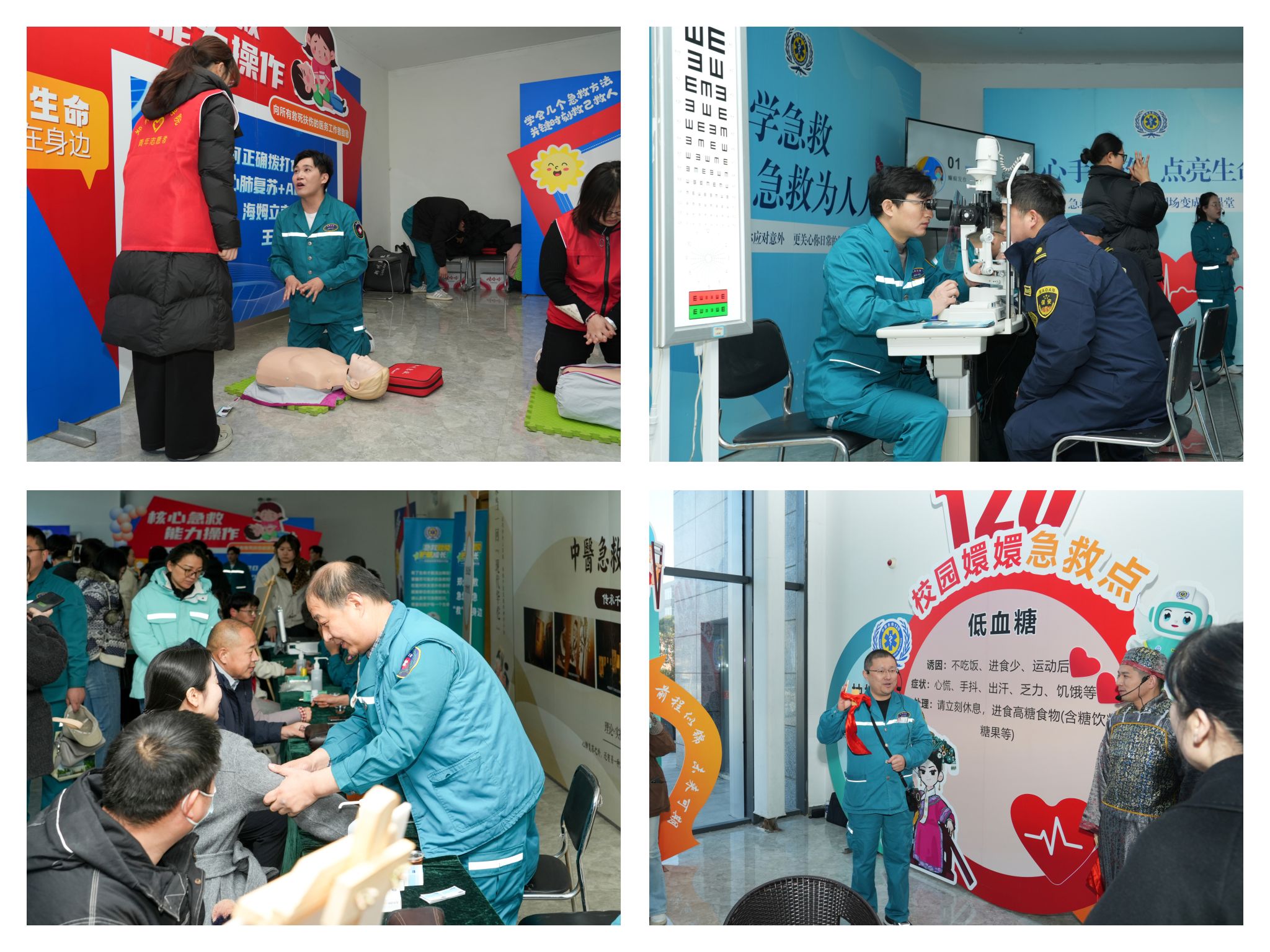 本次活动由1个主会场与5个专题工作坊同步开展沉浸式教学与实操演练。活动内容精准对接校园急救需求,涵盖校园常见急症与创伤应对、晕倒患者急救、气道异物梗阻处置、中医穴位按压急救技巧等多个维度。现场学习氛围浓厚,师生们踊跃参与实操练习,切实将理论知识转化为应急处置能力。