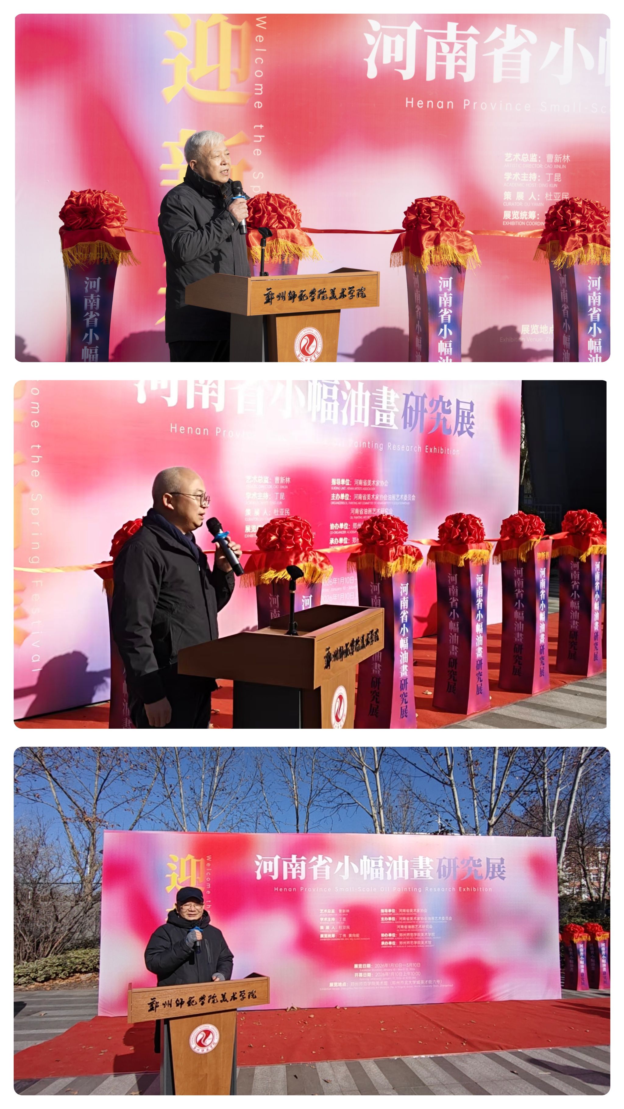 2026年1月10日上午,迎新春——河南省小幅油画研究展在郑州师范学院美术馆隆重开幕,展期至3月10日。在河南省美术家协会的指导下,本次展览由河南省美术家协会油画艺术委员会、河南省油画艺术研究会联合主办,郑州师范学院美术学院协办,郑州师范学院美术馆承办,展陈百余幅油画佳作,吸引省内美术界嘉宾、艺术爱好者驻足品鉴。