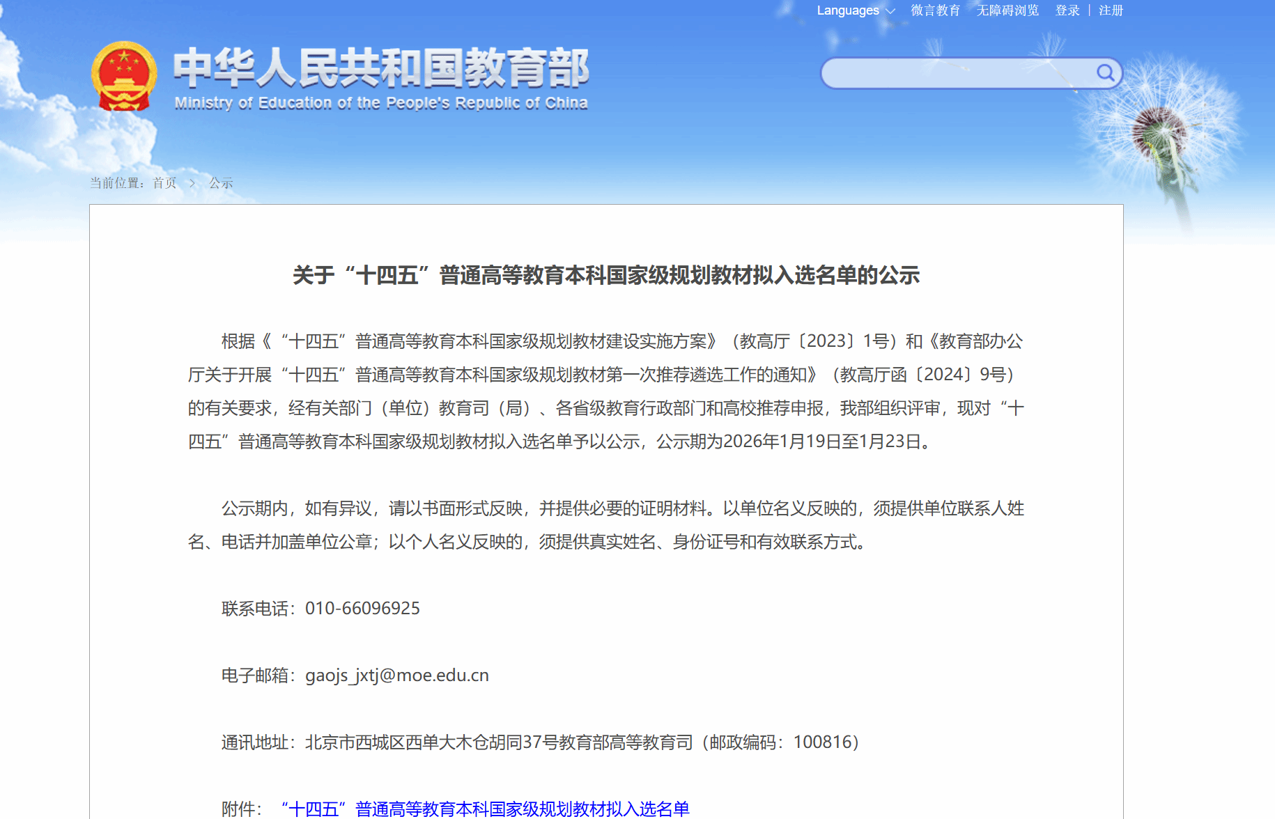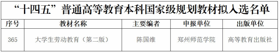 2026年1月19日,教育部发布《关于“十四五”普通高等教育本科国家级规划教材拟入选名单的公示》,我校教育学部陈国维教授主编的《大学生劳动教育(第二版)》成功入选,这是我校在国家级教材建设领域取得的又一重要突破,标志着学校本科教育教学及优质教材资源建设工作迈上了新台阶。
