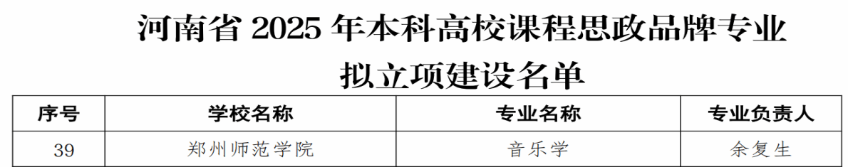 2026年1月30日,教育厅发布《关于河南省2025年本科高校课程思政品牌专业评审结果的公示》,我校音乐学专业入选全省50个省级课程思政品牌专业拟立项建设名单,标志着我校在推进课程思政与专业建设同向同行、融合发展方面取得重要突破。