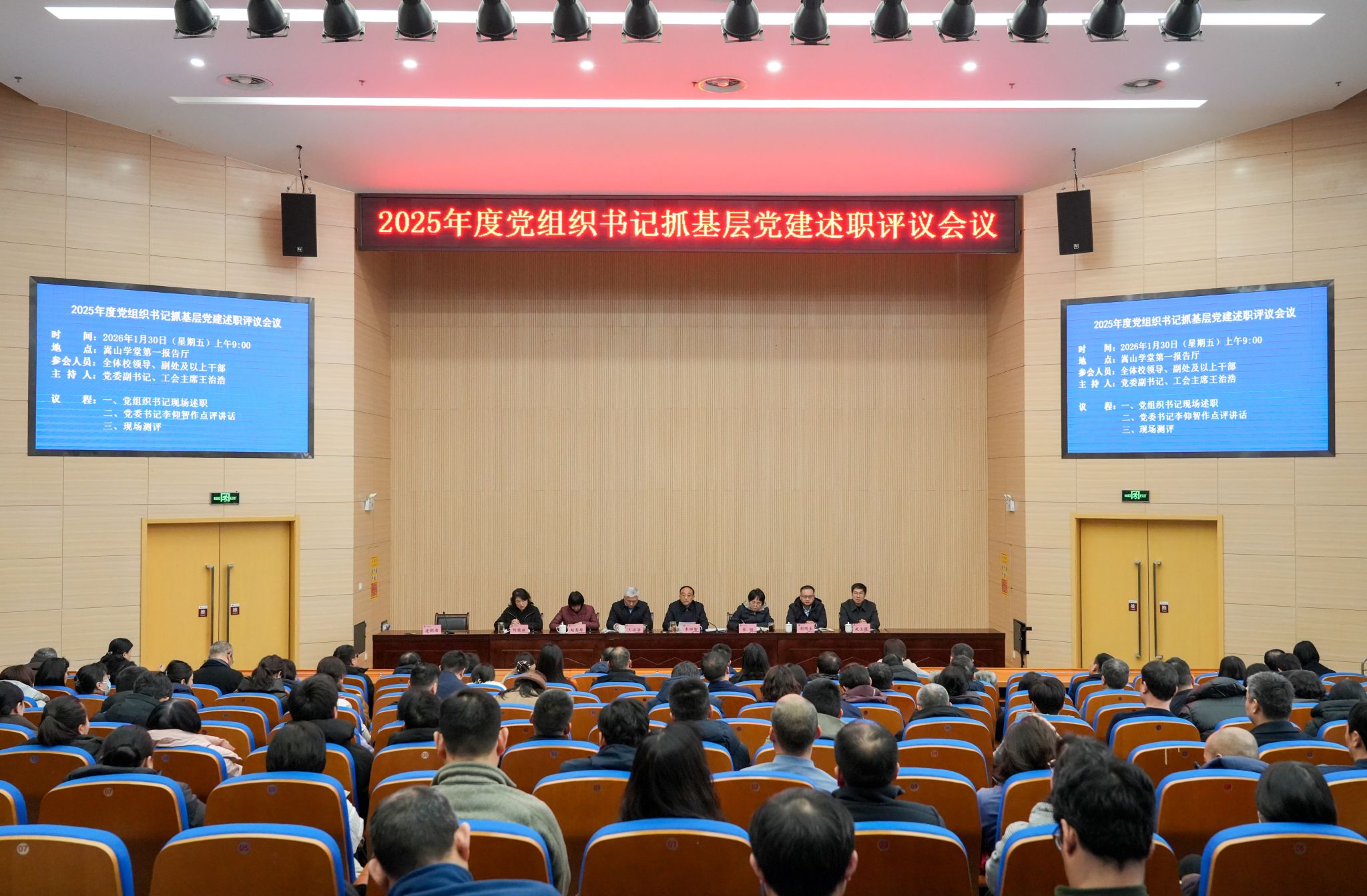 1月30日上午,我校2025年度党组织书记抓基层党建述职评议会议在嵩山学堂第一报告厅召开。全体校领导、中层正副职干部参加会议。党委书记李仰智作了点评总结讲话。会议由党委副书记、工会主席王治浩主持。