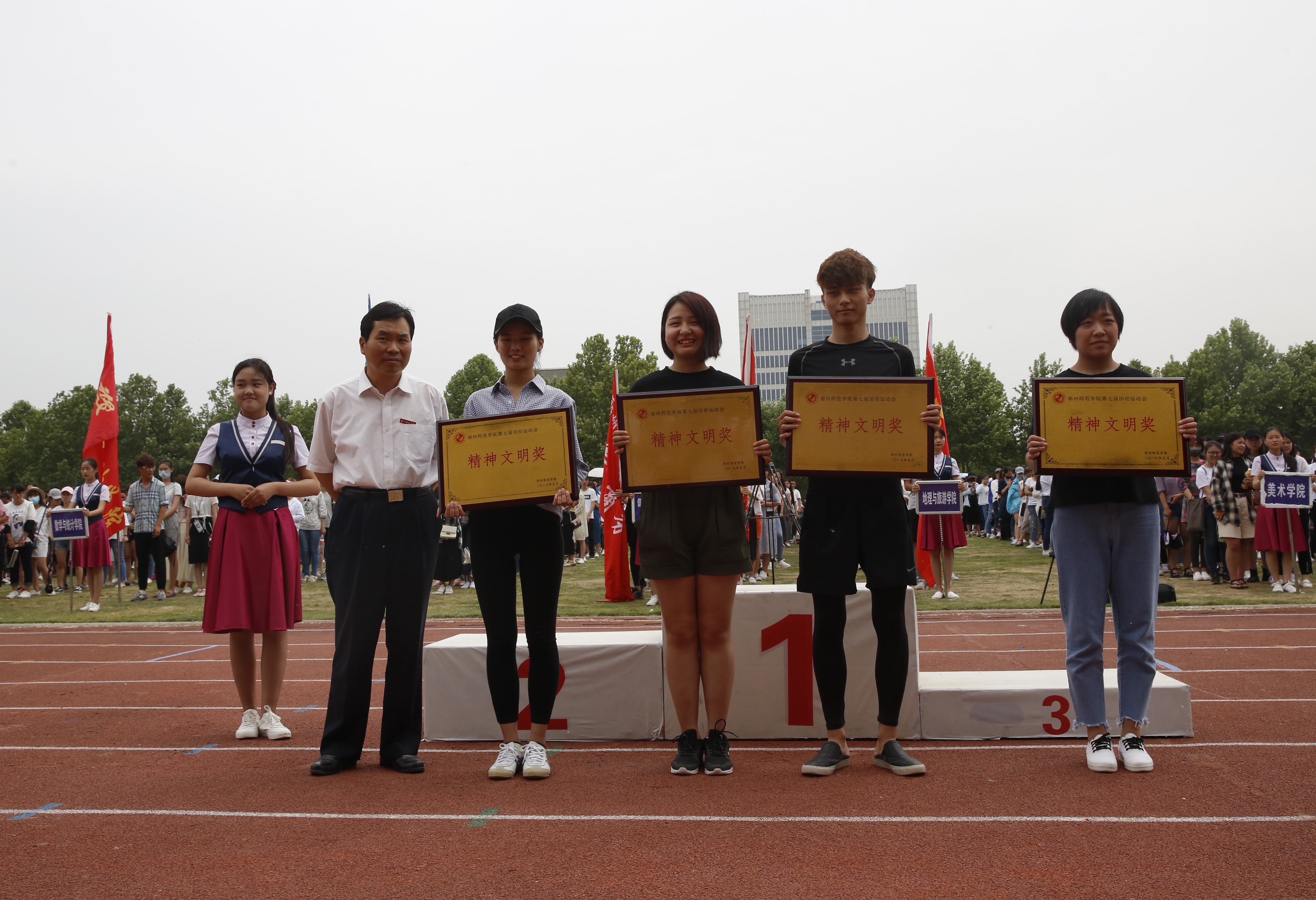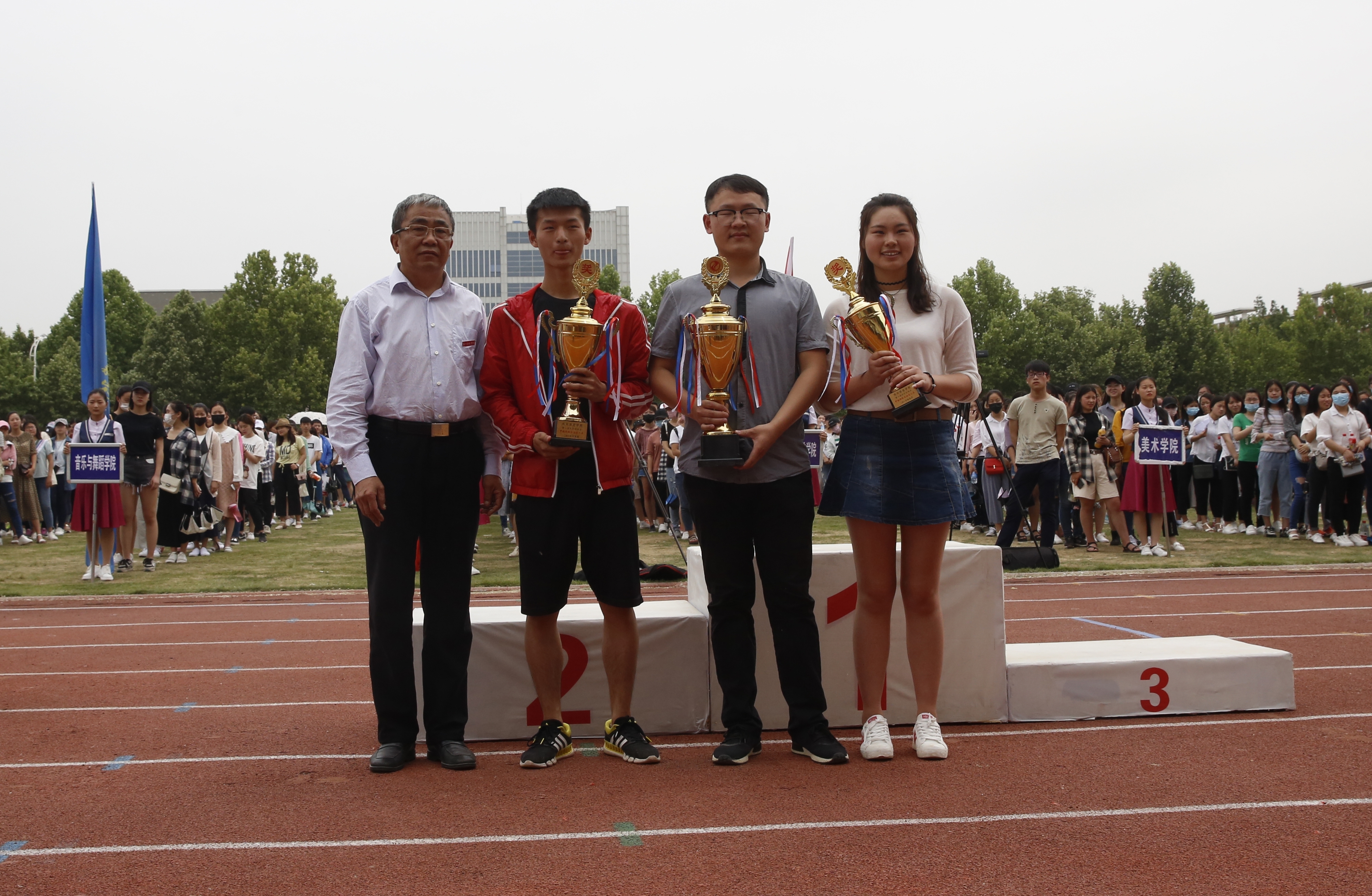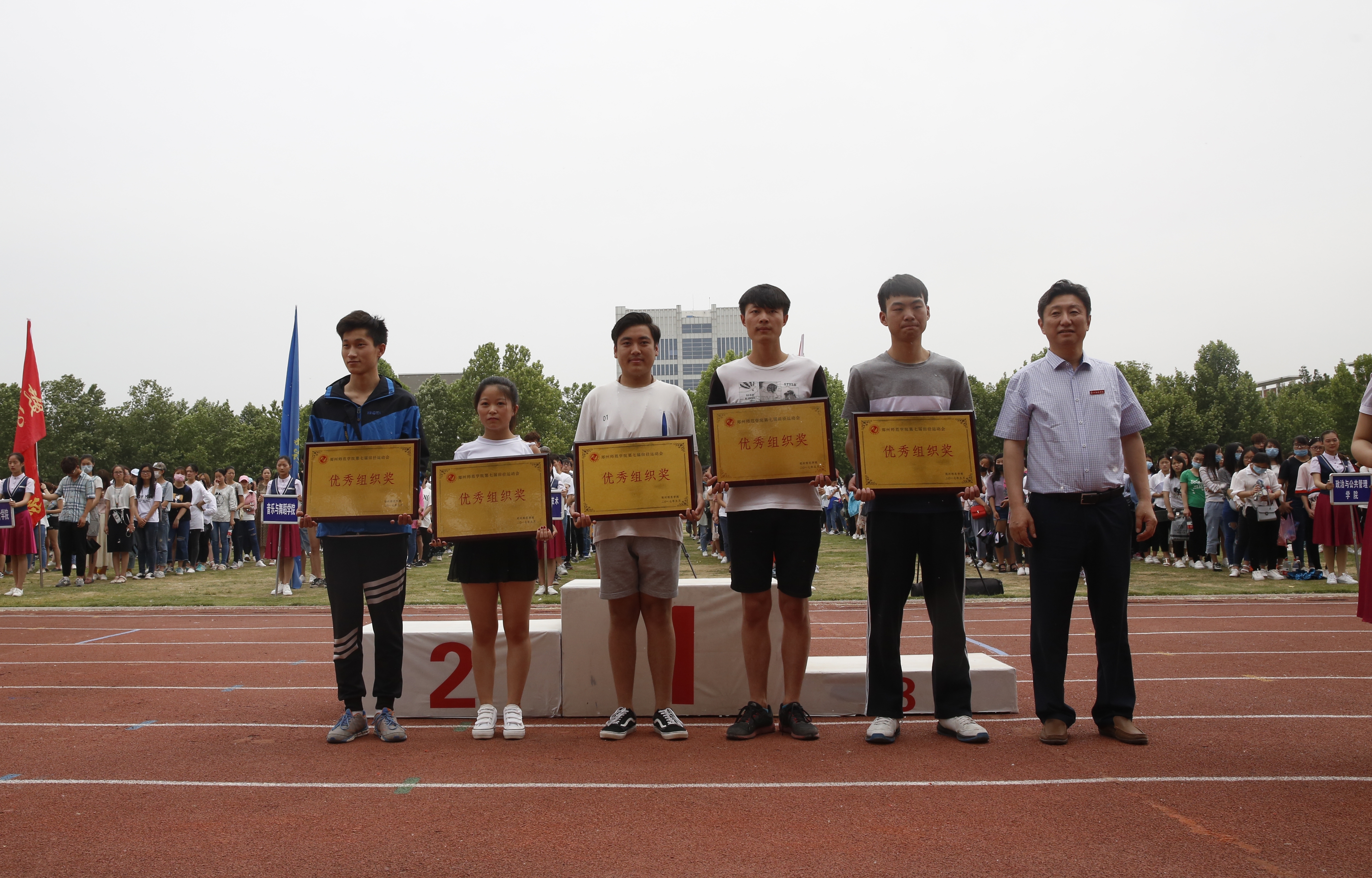 经过两天半紧张激烈的比赛,我校“华光”体育活动暨第七届田径运动会于5月11日上午胜利闭幕。校领导翟幸福、蒋丽珠、孔青、贾敏仁、李树生、刘济良、陈新出席闭幕式,并为获得团体总分奖、精神文明奖和优秀组织奖的单位颁奖。闭幕式由副校长刘济良主持。
