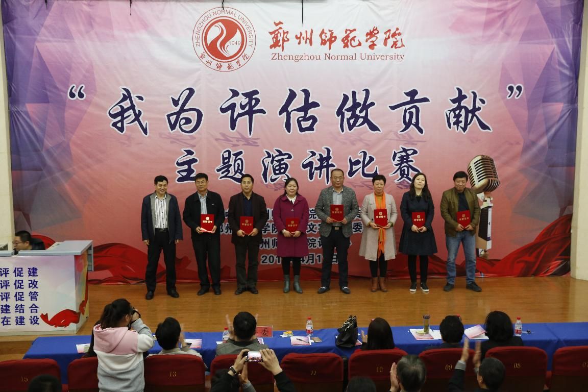 《关爱生命,激发潜能---我为迎评做贡献》、《在评估中磨砺精致》、《撸起袖子加油干!》、《郑州师范学院,我心灵的安放地》、《滴水汇江海,我为评估做贡献》一篇篇激情洋溢的演讲来自教师工作中的生动事例和感人事迹,从不同的角度阐述了演讲者对迎评工作的认识和理解,并决心从自身做起,从小事做起,用实际行动为迎评作贡献。这既是一次师德师风教育和精神洗礼,也是一次迎接本科评估工作的动员会!最终,来自地理与旅游学院党总支的樊华和来自机关党总支的许波获得一等奖。