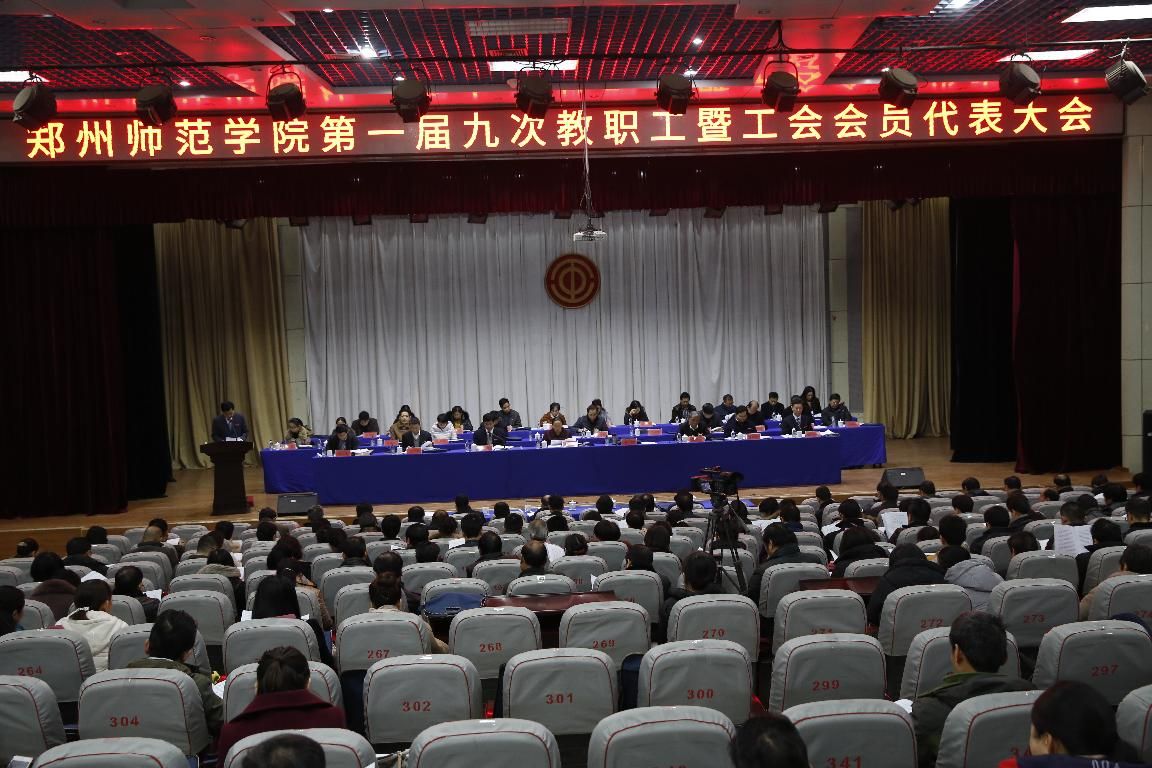 大会由校党委副书记、工会主席弓民主持,代表们认真听取并审议了校党委副书记、校长赵健的《学校工作报告》,审议了党委副书记、工会主席弓民的书面《工会工作报告》,审议了副校长孔青的《学校财务工作报告》和王坤峰同志的《工会经费审查报告》,听取了副校长刘济良关于《郑州师范学院”十三五”事业发展规划》编制情况的说明,增补了李树生、刘济良和陈新为郑州师范学院一届九次教职工暨工会会员代表,大会通过了相关决议。