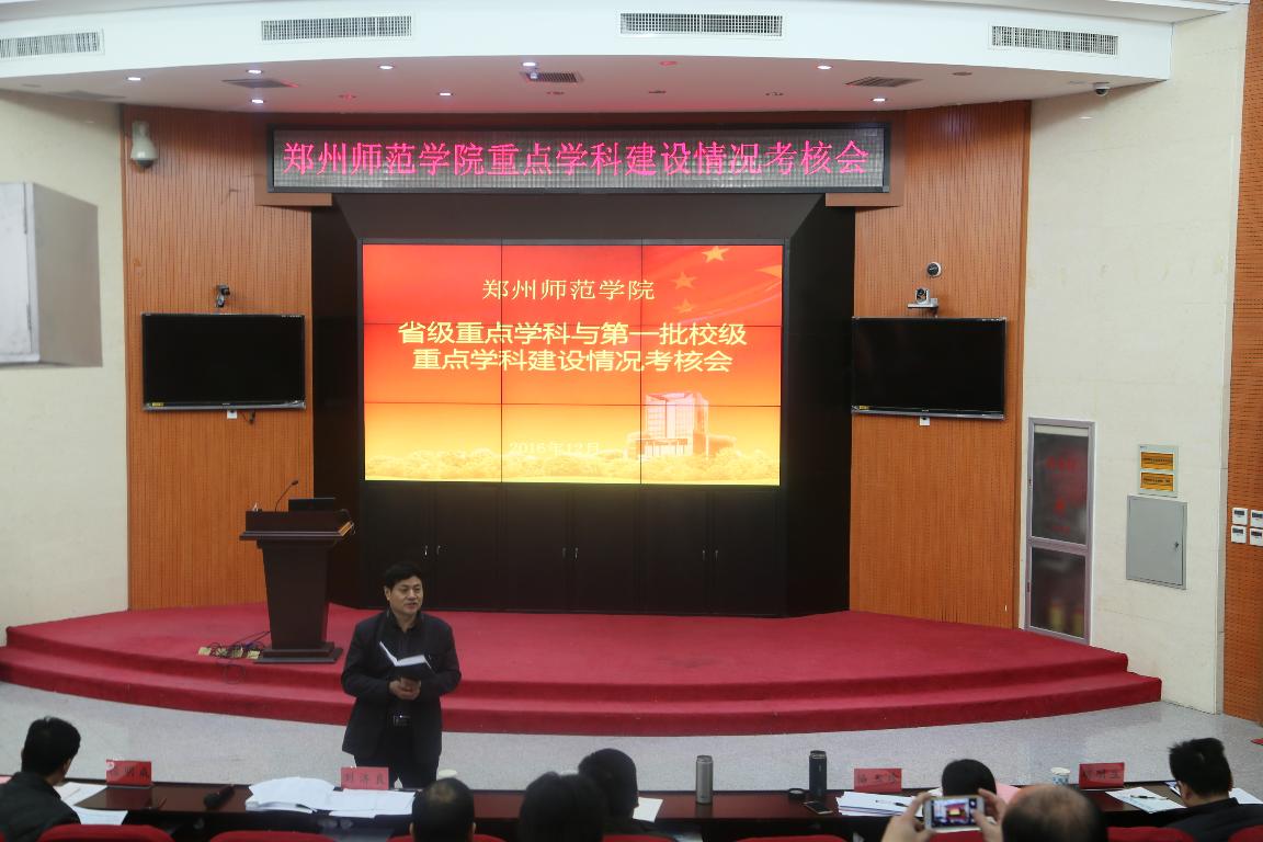12月29日上午,郑州师范学院省级和第一批校级重点学科建设情况考核会在外语楼报告厅进行。与会人员包括各重点学科带头人、学科团队、考核专家组成员及教务处人员。副校长刘济良作为考核专家组组长出席会议。