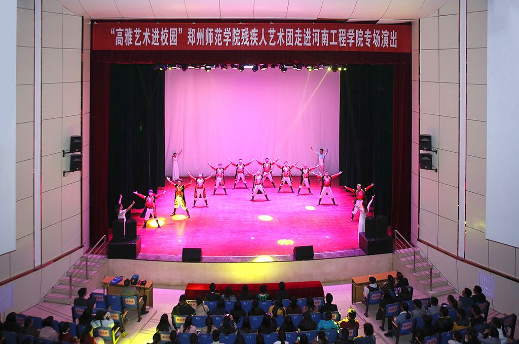 响应国家教育主管部门促进高校素质教育,提升校园文化品位,丰富校园文化生活,引导大学生弘扬优秀民族文化的号召。我校在承接“高雅艺术进校园活动”的同时,也担负起“高雅艺术进校园活动”的演出任务,在党委书记于向英、副校长刘济良的带领下,郑州师范学院残疾人艺术团于11月29日、30日走进郑州升达经贸管理学院、河南工程学院,为三千余名教师生带去了一场主题为睿梦起航的歌舞盛宴。