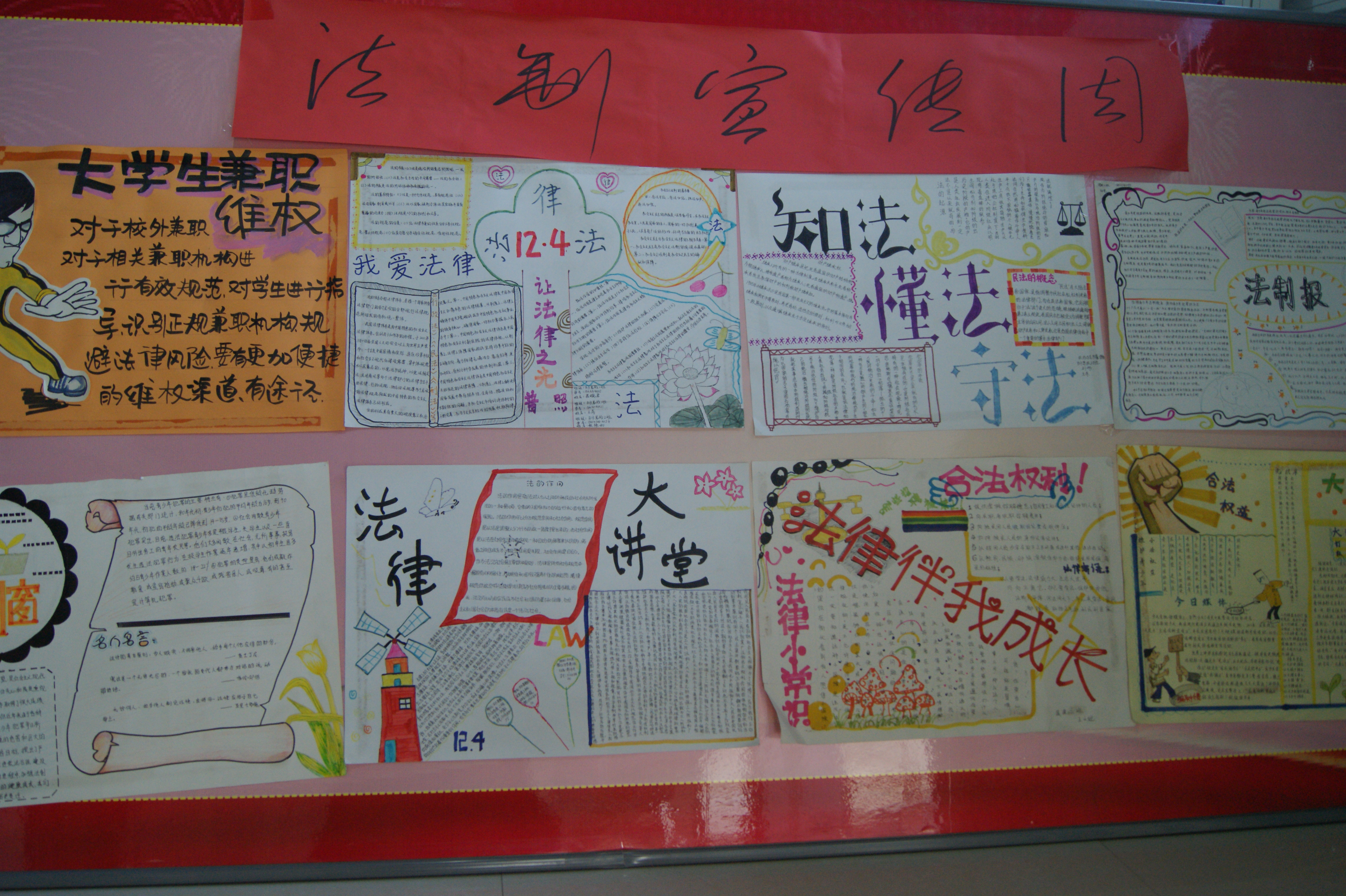 活动期间,教师们利用课间时间给学生讲述了宪法日的由来及意义,重点突出依宪治国、依宪执政等理念,明确宪法赋予了公民的基本权利和义务等内容。学生们更是热情高涨,制作了大量的有关宣传法治内容的手抄报、自编自演的“反腐”情景剧等。