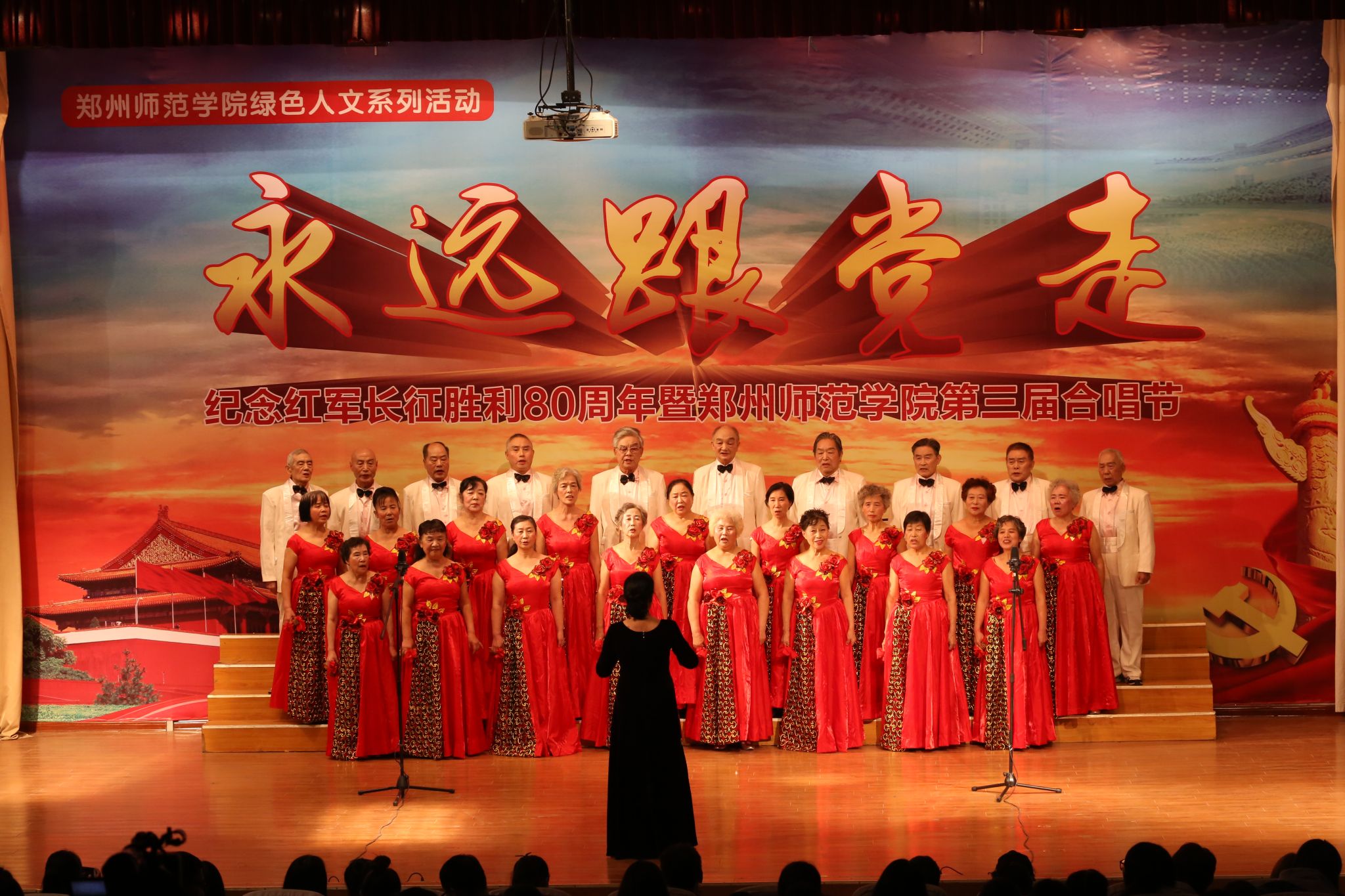 11月8日下午,我校绿色人文系列活动——“永远跟党走”第三届合唱节在七号楼报告厅举行。河南省文联副主席、河南省音乐家协会驻会主席、河南省合唱联盟主席李仲党,河南省音乐家协会顾问、河南省合唱联盟副主席朱金键,校领导于向英、赵健、弓民、翟幸福、蒋丽珠、李树生、刘济良,校党委宣传部、学生处、工会、团委、各学院负责同志及师生代表共同观看了演出。