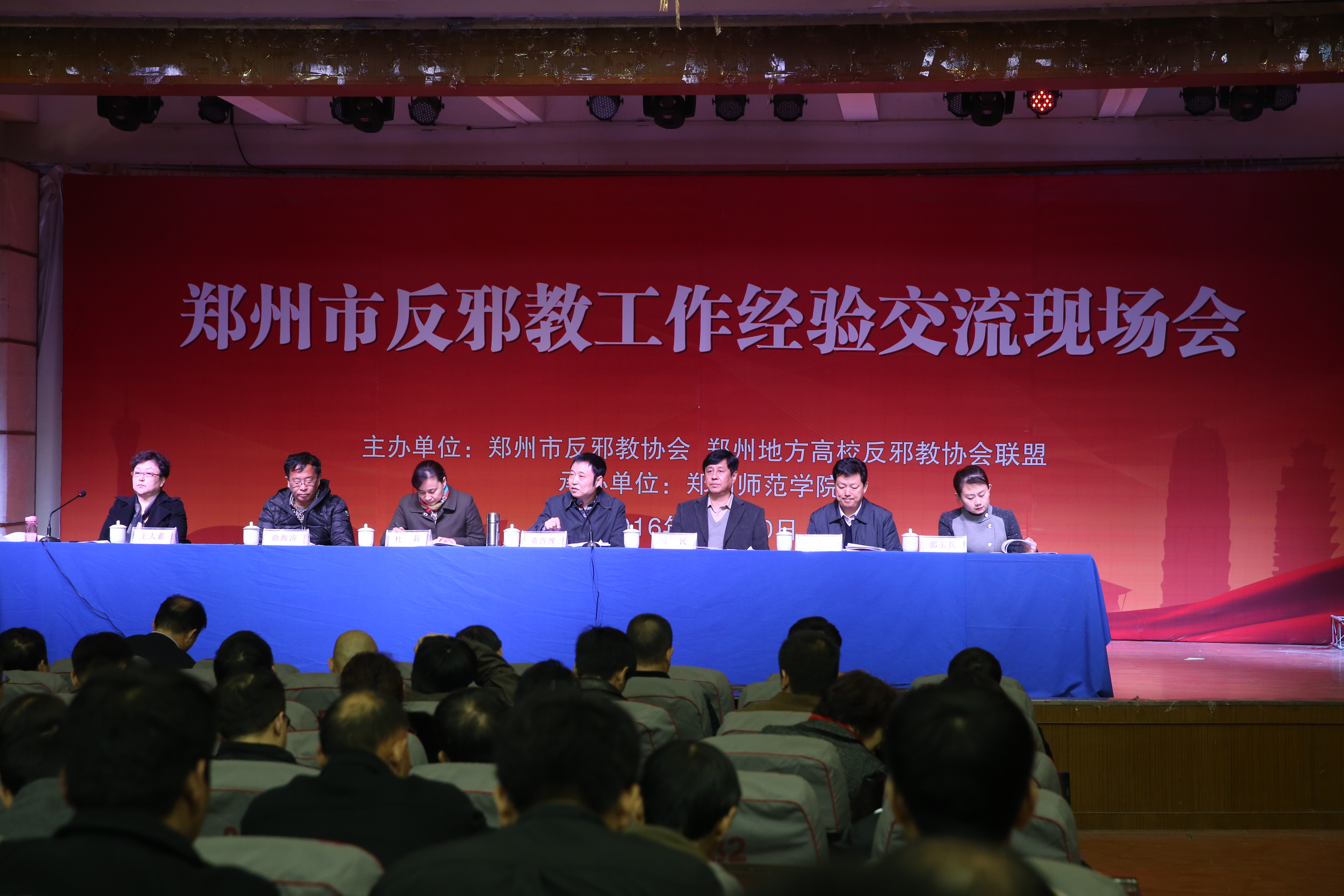 11月10日上午,由郑州市反邪教协会、郑州市地方高校反邪教联盟主办,我校承办的郑州市反邪教工作经验交流现场大会在我校音乐厅隆重举行。河南省委防范办主任董鲁豫、河南省反邪教协会秘书长杜莉、郑州市委防范办主任陈庆山、郑州市科协副主席曲海涛、郑州市教育局高教处副处长谢婉玉、郑州市反邪教协会秘书长王人素出席会议。开幕式由我校党委副书记、工会主席弓民主持。省市防范办、反邪教协会、各县市区反邪教协会以及郑州市近20所地方高校反邪教协会的领导和代表共聚一堂,现场交流反邪教工作经验,共商郑州市反邪教工作大计。