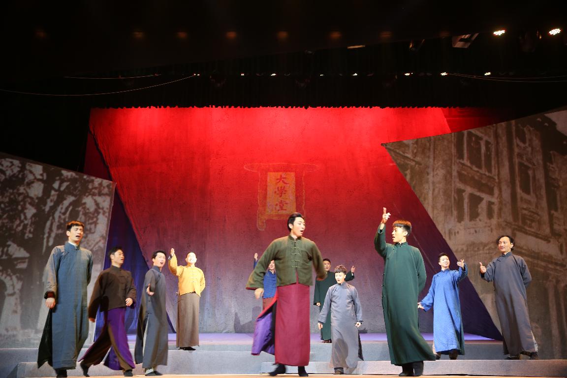 演出在激动人心的音乐声中拉开序幕。舞台上,演员们振奋人心的歌唱,刚劲有力的舞蹈动作赢得了台下热烈的掌声。音乐剧《元培校长》共分为风气更新、风起云涌、风过雨沉、风平浪静和玉汝于成五场。该剧由北京大学艺术学院研究生和学生舞蹈团共同演绎。该剧结合现代摇滚音乐,讲述了蔡元培在北京大学担任校长带领有志青年共同努力奋斗的时代事件。展现了蔡元培“思想自由,兼容并包”的教育观念,传播了“爱国、进步、民主、科学”的五四精神。