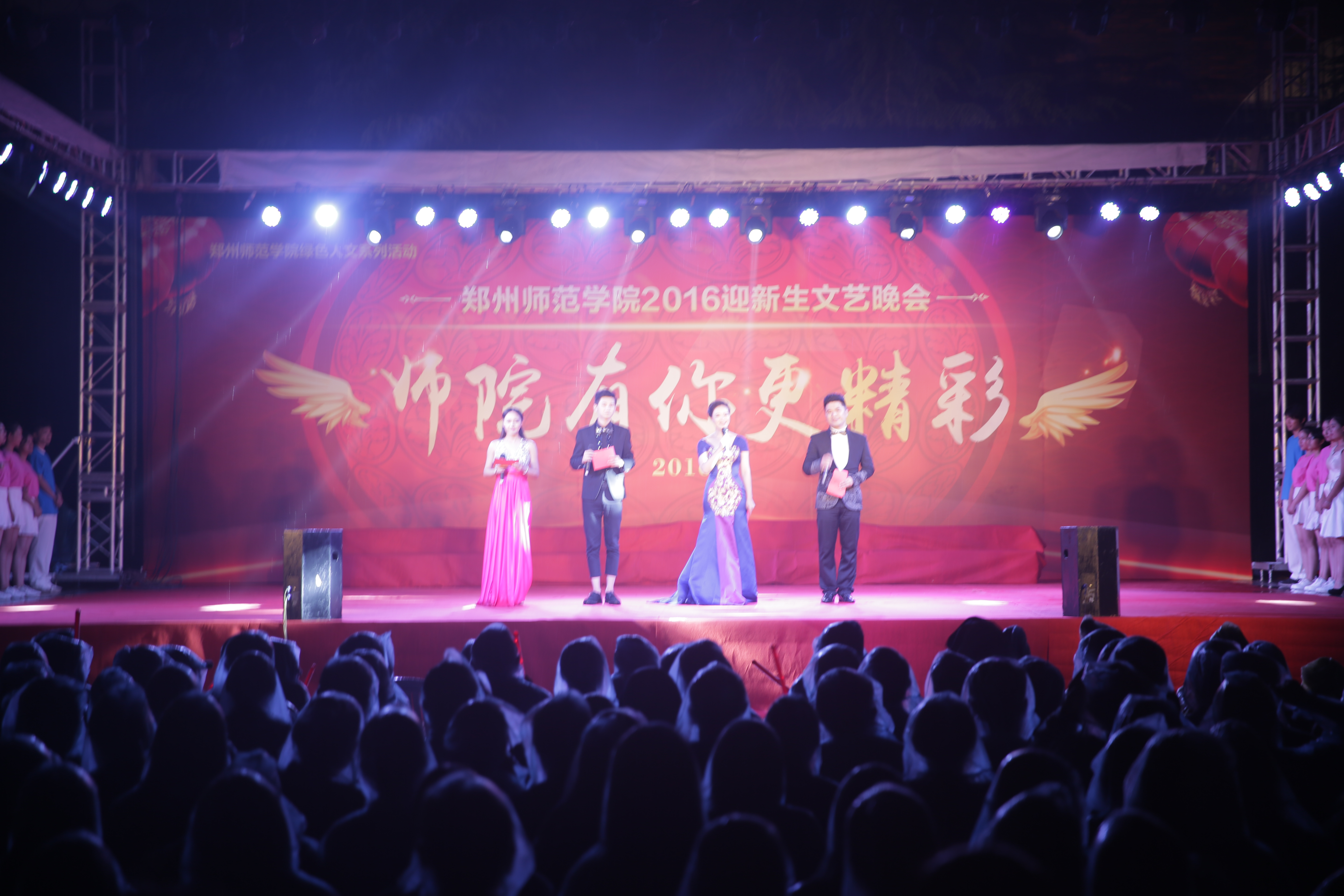 9月27日晚7点,我校在西校区艺术广场举行2016迎新生文艺晚会。校领导、各行政部门和各学院负责人以及5000多名师生观看了本次演出。