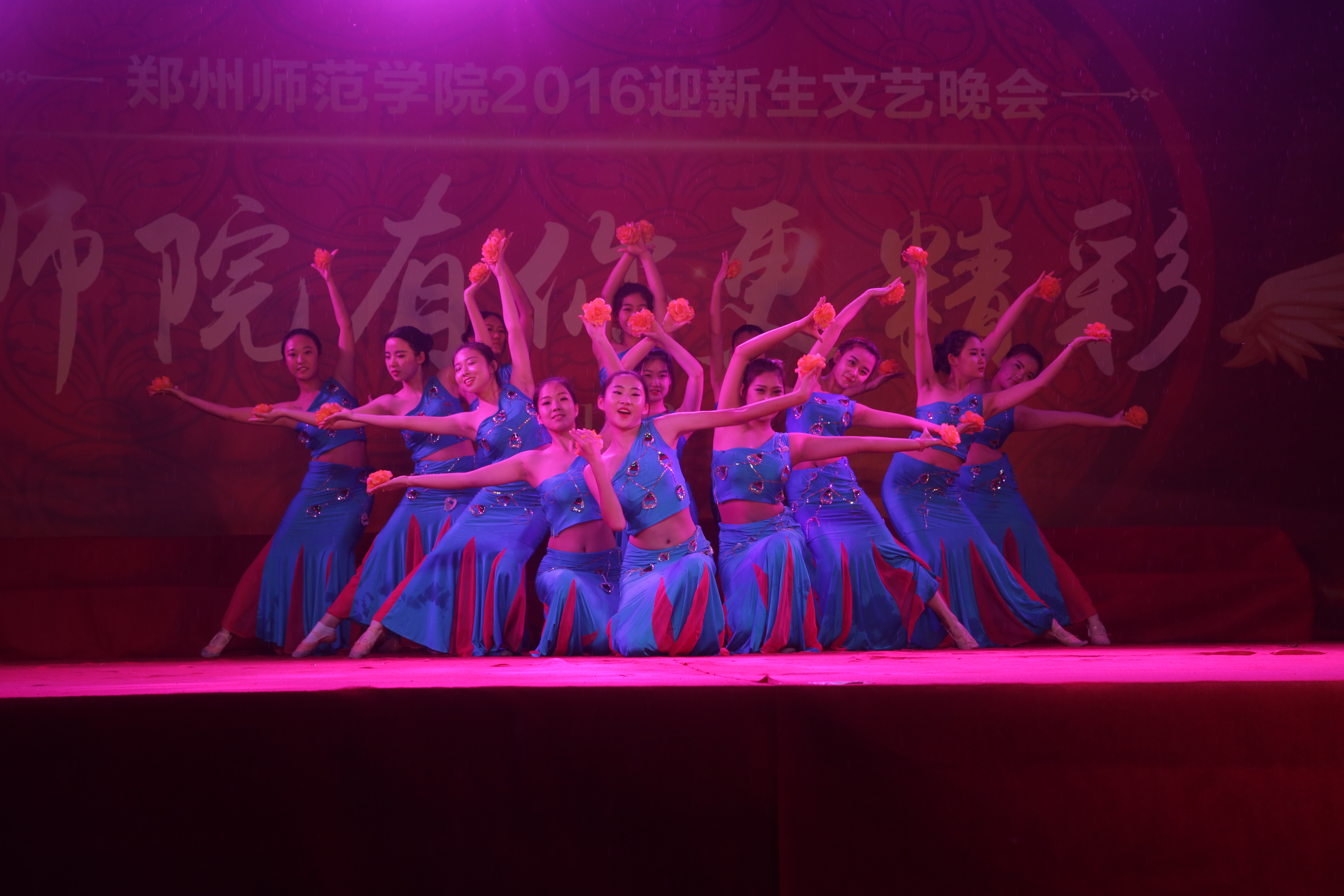 伴随着一首旋律优美的音乐声响起,音乐与舞蹈学院的同学们为大家带来了民族舞《花儿》彰显了我校独特的文化魅力。晚会以大合唱《与中原一同崛起》结束了今天的演出。