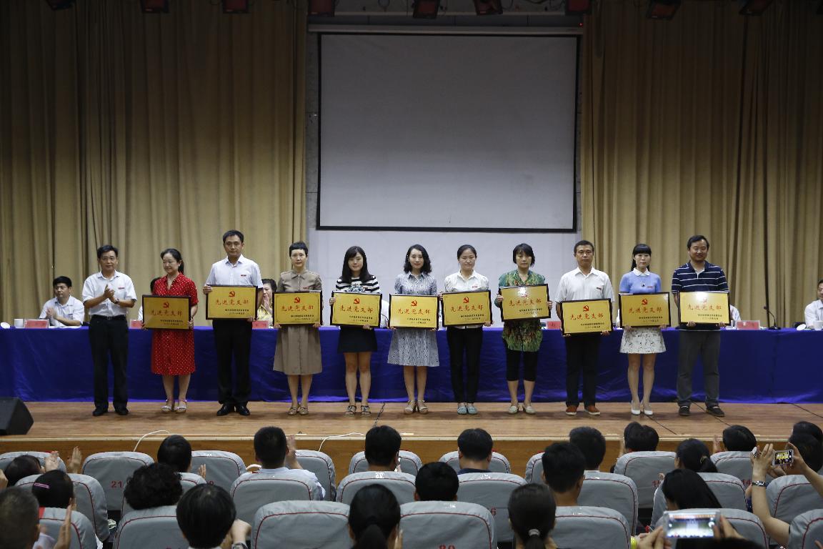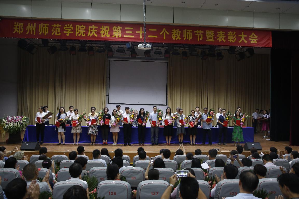 大会首先宣读了中共郑州师范学院委员会《关于表彰2015-2016学年度“先进五好党总支”和先进党支部的决定》、《关于表彰文明创建工作先进集体的决定》、《关于表彰2015-2016学年度优秀共产党员、优秀党务工作者、优秀教师、优秀教育工作者、优秀德育工作者、科研标兵、文明教工、优秀青年教师的决定》等文件,获奖单位和个人先后登台领奖。