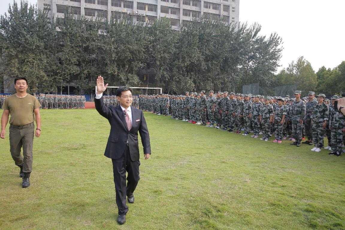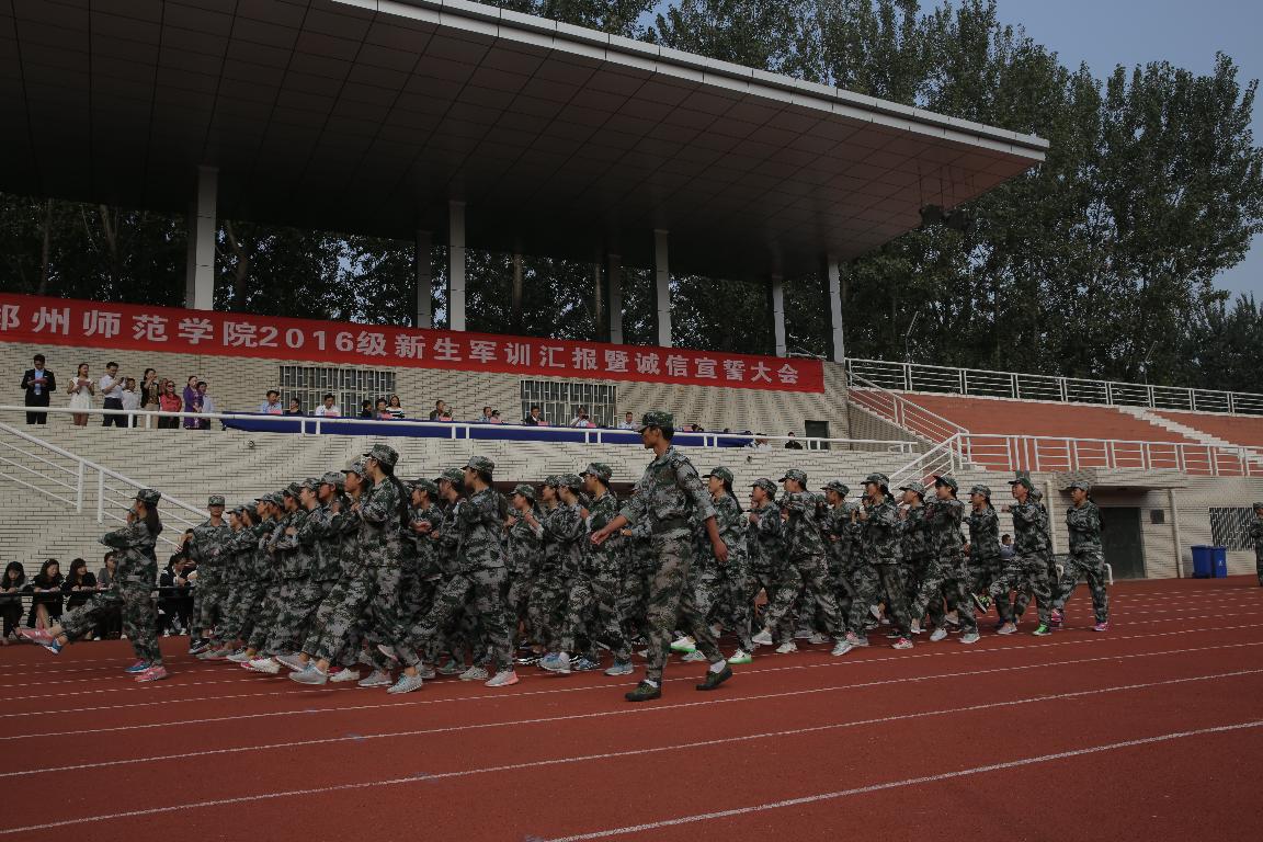 校党委书记于向英在讲话中感谢了承训教官和其他为军训辛勤付出的师生和工作人员,高度赞扬了会操表演中同学们整齐划一的队列,昂扬向上的精神。给2016级的给新同学们提出了三点学习生活建议:第一,要多读书。大学几年,如白驹过隙,课堂之外,无论到哪里,包里都应该带上一本书,专业领域的书要读,经典书目更要读,要在图书的海洋中遨游徜徉,追逐梦想。第二,要多合作。郑州师范学院的学风是“求知、合作、做事、做人”,同学们要着力提高自己的沟通能力,多与别人合作,这不仅是大学生活的需要,更是将来适应社会的需要。第三,要多实践。知识是前人的精华,实践是自己掌握本领的必经之路。同学们要积极参加社会实践活动和教育见习实习,通过这些活动和实践提升能力,为成功奠定坚实的基础。