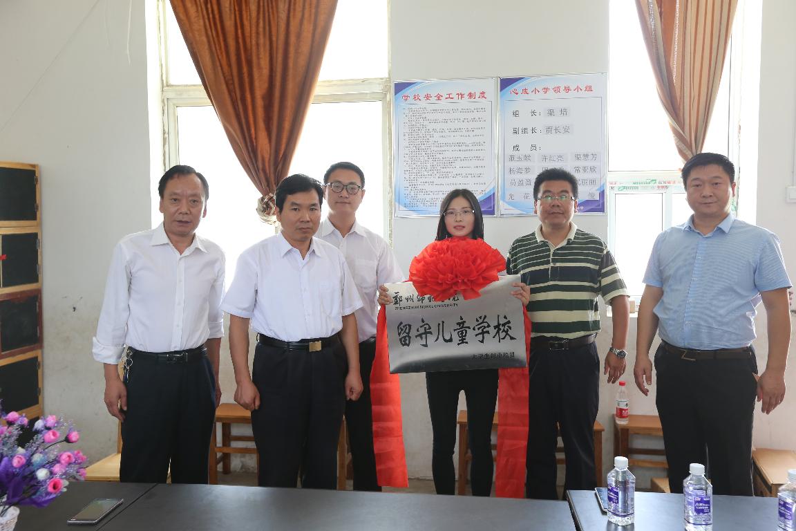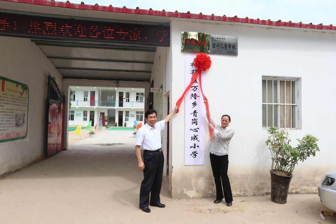 会后,副校长贾敏仁、万隆乡党委书记吴文灵为留守儿童学校挂牌。