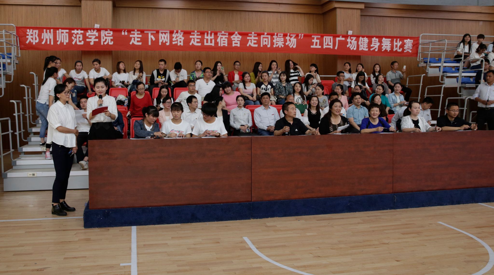5月4日下午,我校在东校区综合训练馆中举办了第三届“三走”五四广场舞大赛,此次广场舞比赛以校团委主办、体育学院团总支承办。党委副书记、工会主席弓民、校团委负责人以及各学院负责人参加此次活动。