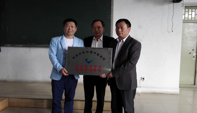 4月26日下午,IT专业方向分析与就业前景说明会暨“中关村软件园中软高科郑州师范学院教学实训基地”揭牌仪式在我校西校区一号楼一阶三教室举行。此次活动由就业指导中心与信息科学与技术学院联合举办。就业指导中心负责人,信息科学与技术学院负责人,中软高科总经理唐勇、河南区总经理杨江伟、特级讲师周正杨到会并讲话。