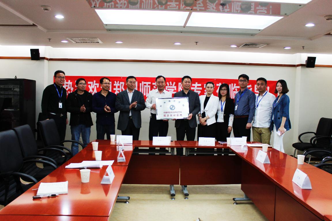 2016年4月9日,我校与中软高科(北京)科技有限公司在北京市中关村软件园举行“校企合作”签约仪式。郑州师范学院就业指导中心主任陈磊、信息科学与技术学院副院长李正超、中软高科总经理唐勇等出席了签约仪式,双方就校企合作达成了长期合作意向,签署了《校企合作协议》并举行了就业实训基地的揭牌仪式。