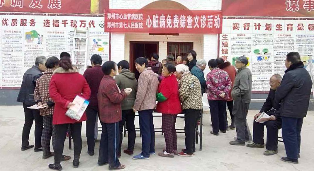 在村委大院,来自医院的心血管内科、心血管外科、神经外科的专家在现场为村民提供免费义诊服务,同时还有医护人员专门为大家免费测血糖、做心电图等,并向他们讲解保健知识,发放各类宣传资料。活动一开始便吸引了大量村民,现场排起了长队。参加义诊的专家和医护人员认真为居民测量血压、听诊心肺,并耐心地解答他们提出的各种问题,对检查中发现的问题提出治疗意见。