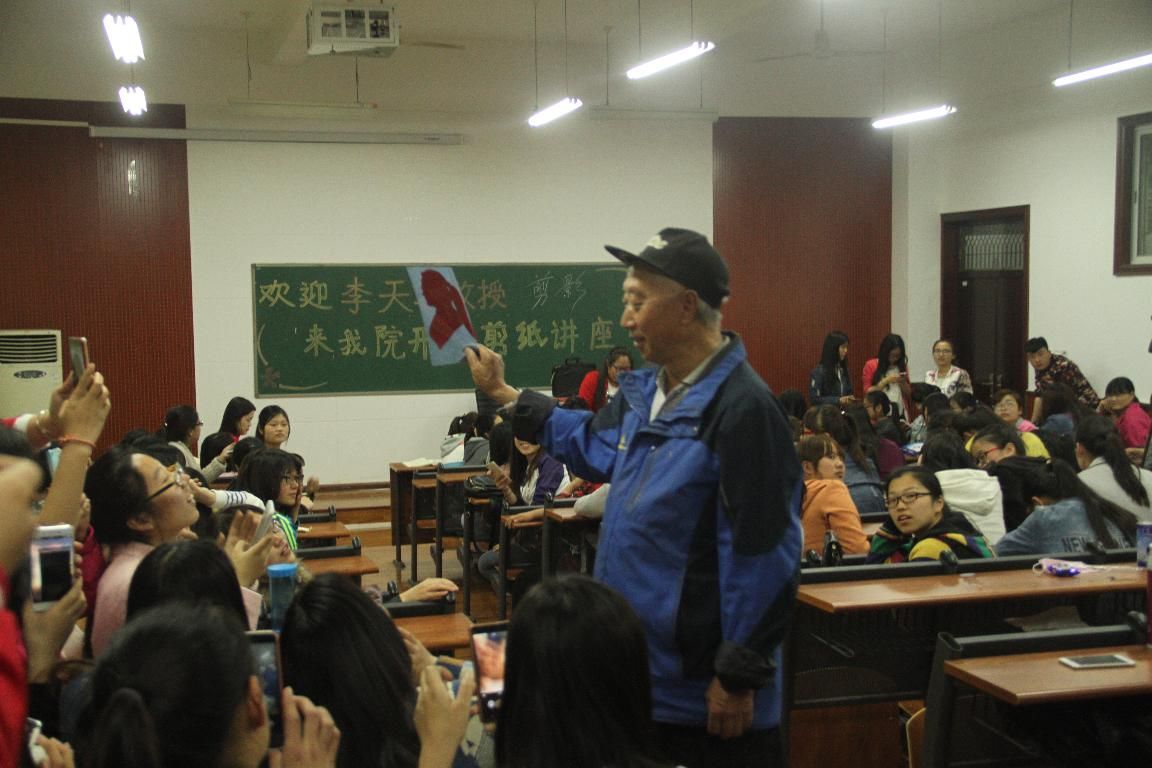 4月11日晚,75岁的剪影艺术家李天华莅临我校并开展剪影讲座。