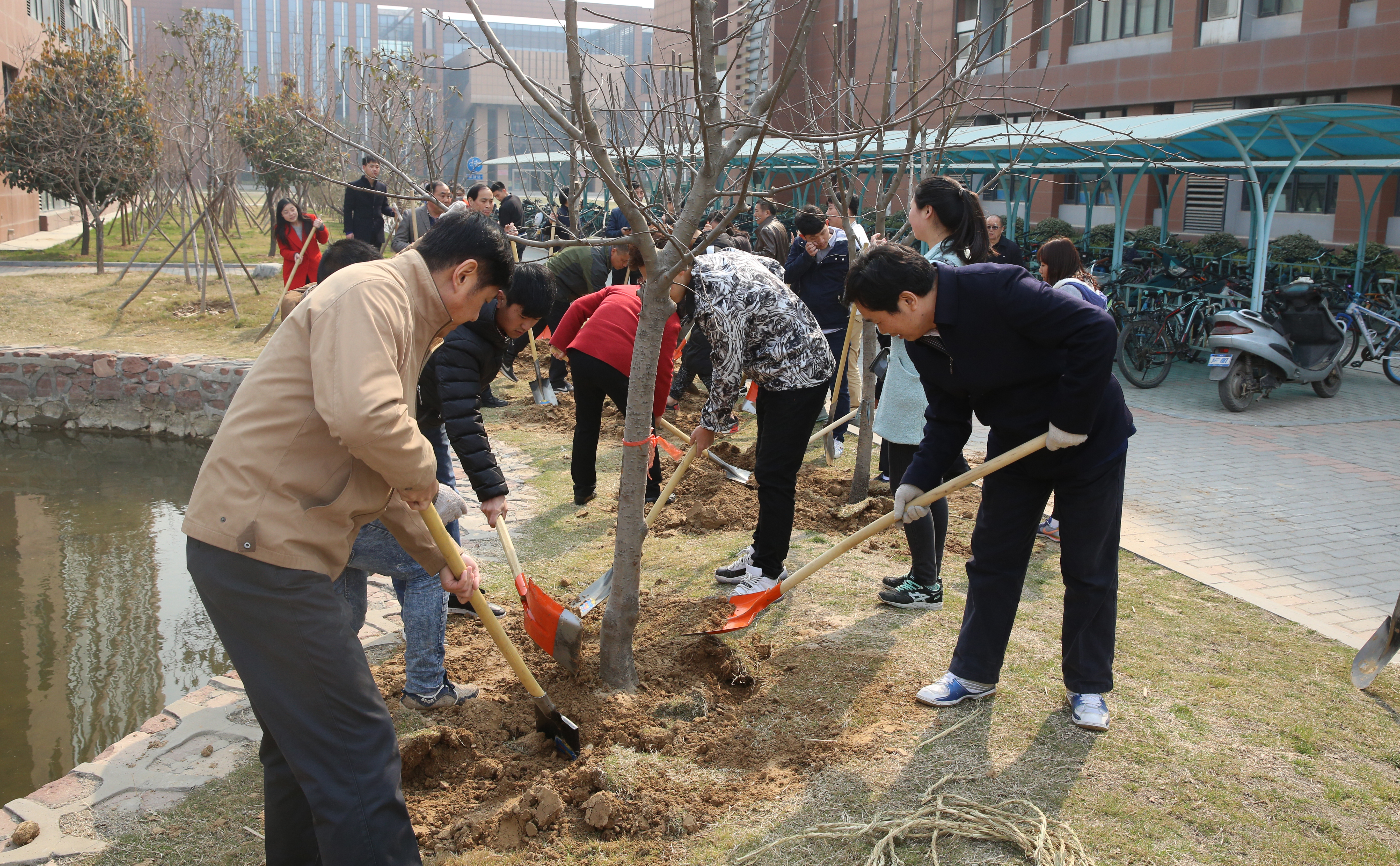 春回大地万物复苏,植树添绿正当时,3月14日上午,全体校领导和部分师生来到东校区经管学院西侧和综合训练馆门前参加义务植树活动,用实际行动建设绿色校园。