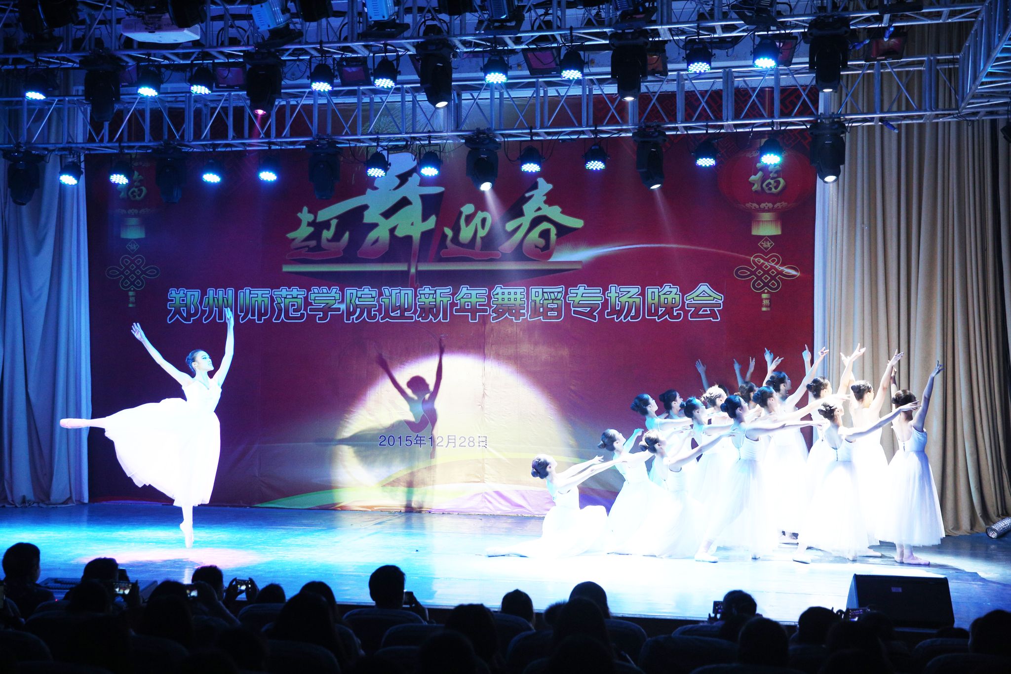 值此辞旧迎新之际,我校于12月28日晚上在七号报告厅隆重举行“起舞迎春”迎新年舞蹈专场晚会。校领导、各部门负责人,各院系党总支、团总支书记与师生共同观看了舞蹈演出。