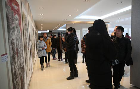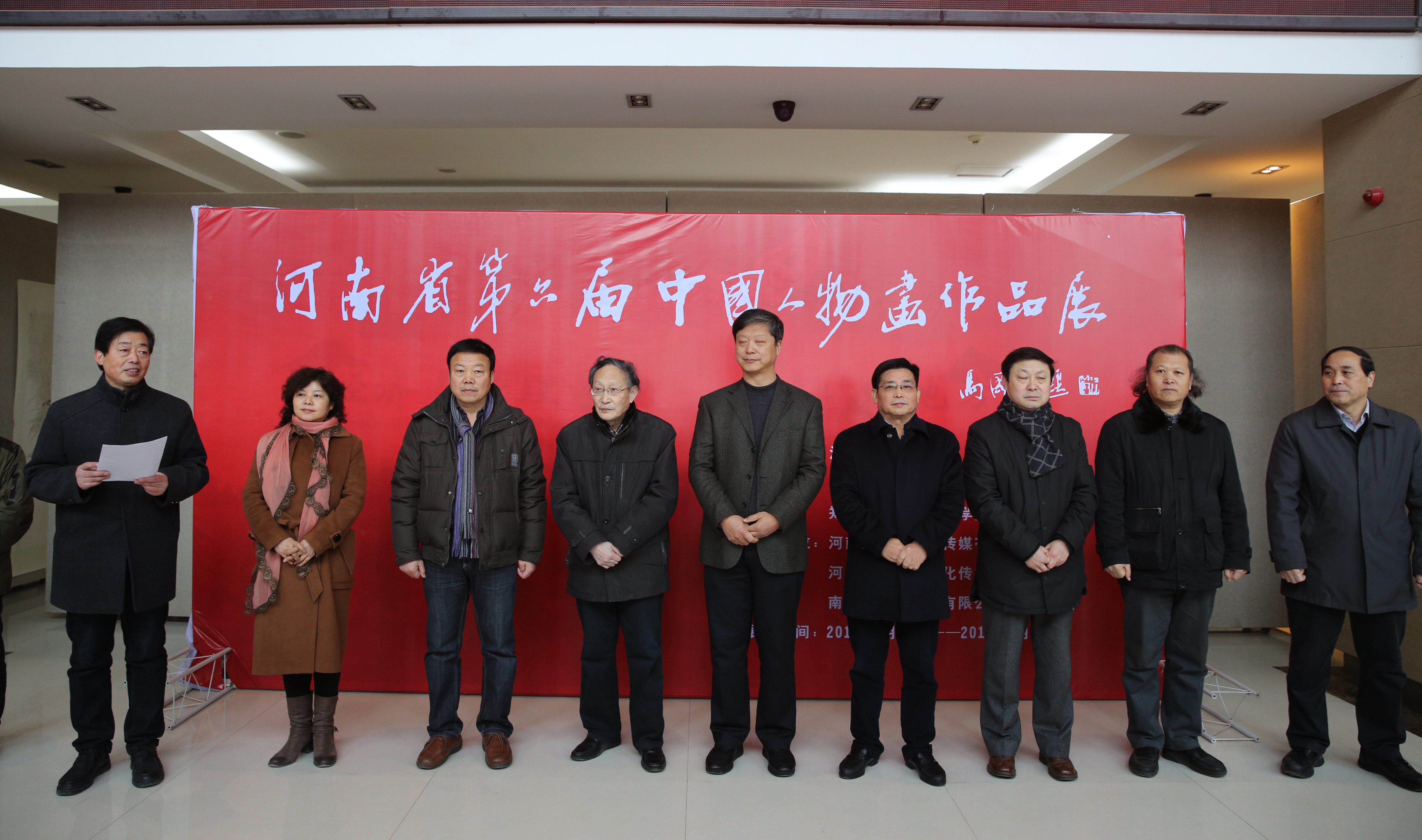 由河南省美术家协会主办,河南省美术家协会人物画艺委会、我校美术学院承办的河南省第六届中国人物画作品展于1月12日上午在东校区经管楼举行开幕式,河南省文联副主席张剑锋,河南大学艺术学院教授著名人物画家丁中一,河南省美术家协会副主席李学峰,河南省美术家协会副主席人物画艺委会主任、河南大学艺术学院教授袁汝波,河南省美术家协会副主席郑州大学美术学院院长魏小杰,河南大学艺术学院副院长彭西春,河南省美术家协会人物画艺委会秘书长郭建明,我校校长赵健,副校长王北生出席开幕式,开幕式由美术学院院长王西军教授主持。