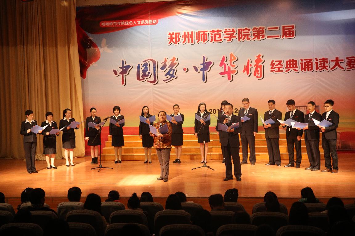 12月1日下午, 第二届“中国梦•中华情”经典诵读决赛在我校7号楼报告厅拉开举行,校领导于向英、赵健、弓民、王北生、蒋丽珠、李树生到场观看了比赛并为获奖选手颁奖。
