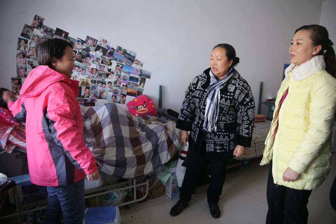 在底慧敏的住处,于书记来到病床前,仔细询问慧敏妈妈的恢复情况,看到慧敏妈妈能够进食,并有情绪和意识等变化时,于书记非常高兴,嘱咐慧敏要照顾好妈妈的生活起居,力争妈妈早日康复;同时还要兼顾好学习,实现自己的人生理想。并亲手将从北京买的棉衣穿在慧敏身上,亲切拉着底慧敏的手说:有什么困难尽管说,学校永远是慧敏坚强的后盾,将会尽最大努力帮助她渡过难关。