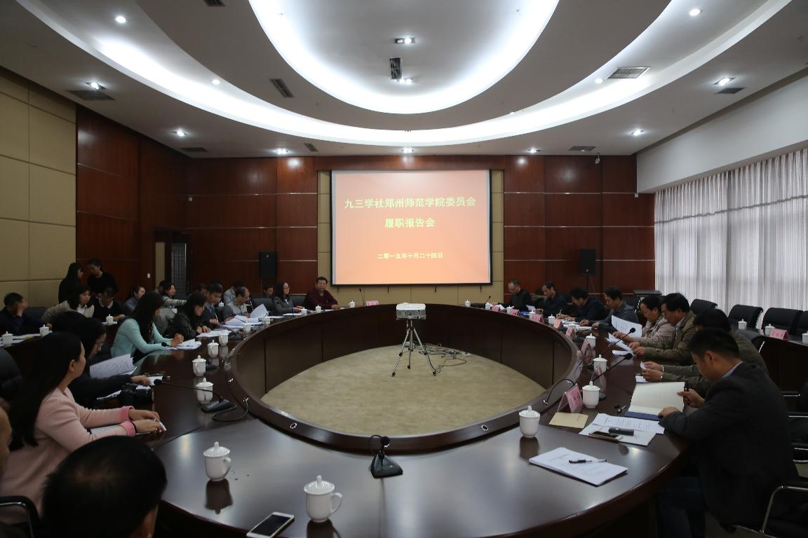 10月24日,九三学社郑州师范学院委员会履职报告会在我校图书馆十楼会议室召开。省政协副主席、九三学社省委主委张亚忠、副主委陈志民、我校党委书记于向英和党委统战部负责人及九三学社郑州师范学院委员会班子成员与骨干社员出席会议。
