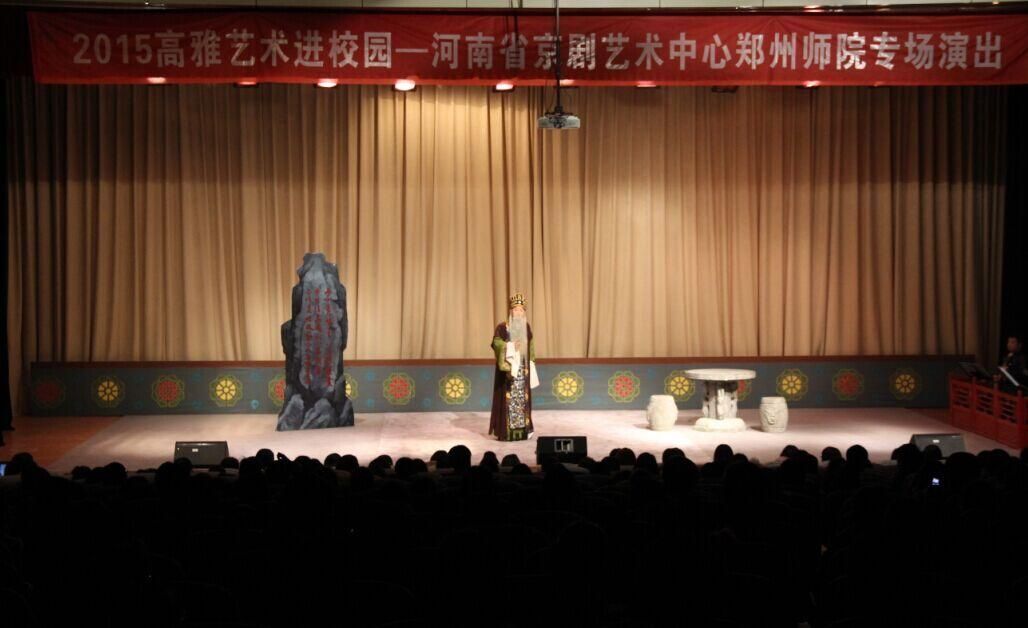 11月11日晚,2015“高雅艺术进校园”—河南省京剧艺术中心郑州师范学院专场演出在7号楼报告厅精彩上演。校党委副书记、工会主席弓民和相关部门负责同志、师生代表共600余人观看了本场演出。