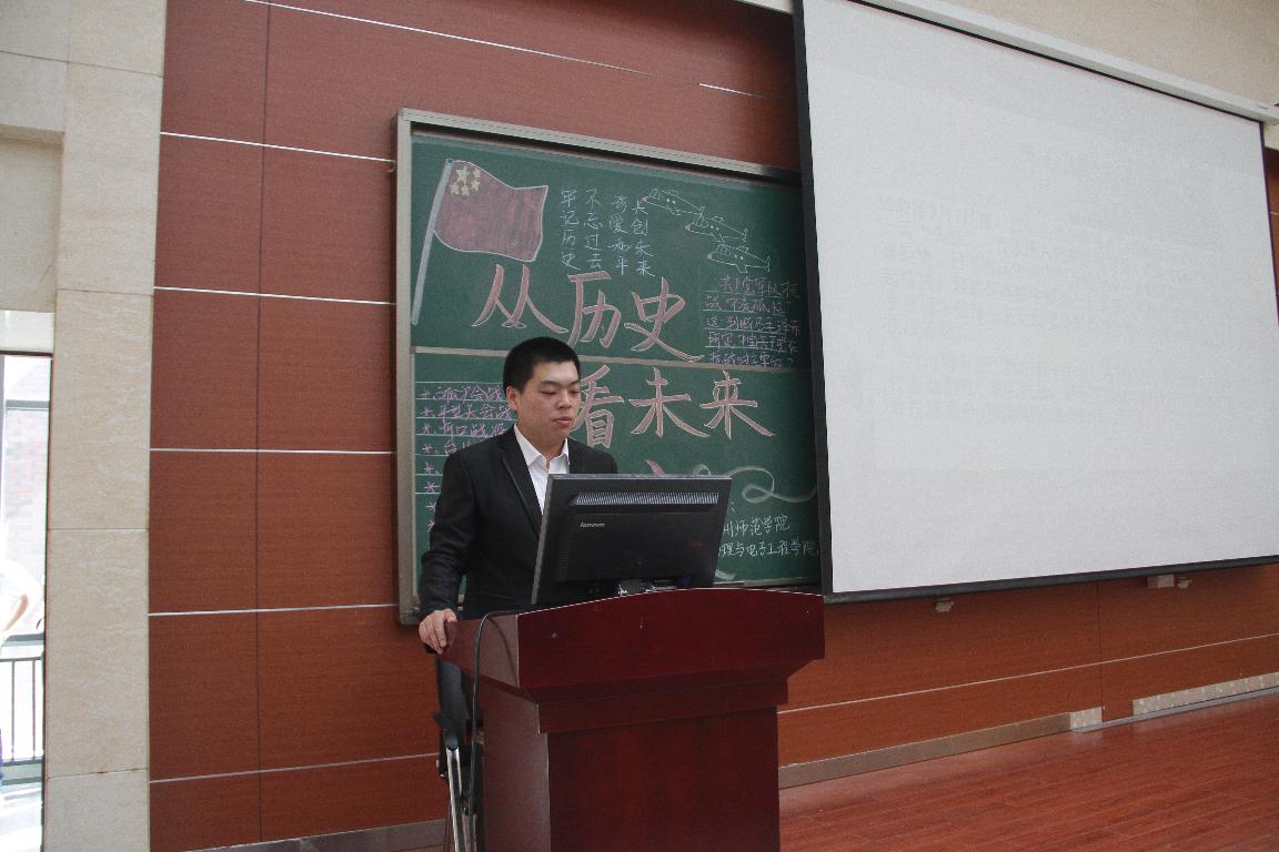 为纪念中国人民抗日战争暨世界反法西斯战争胜利70周年, 9月15日下午,我校开展了名为“从历史看未来”与“铭记历史,珍爱和平”的主题班会。校团委、物理与电子工程学院、化学化工学院负责人进行了指导,各学院的15级新生参加了此次班会。