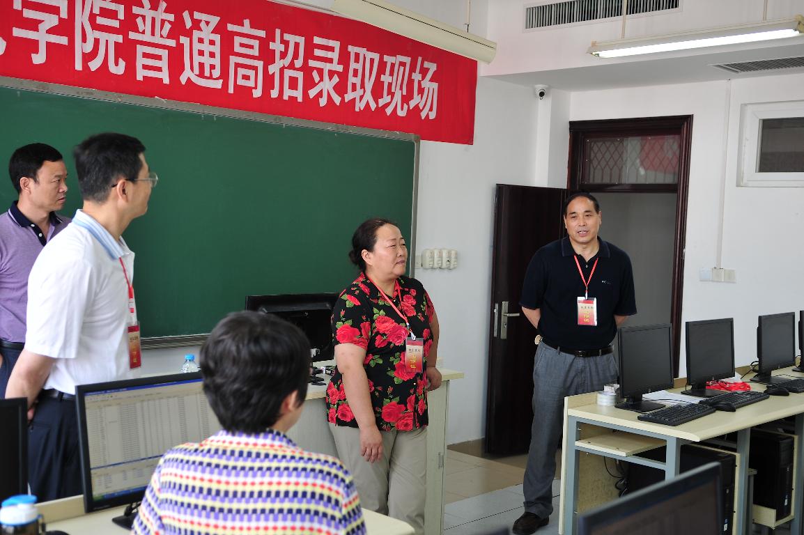 7月9日、10日,我校本科提前批次开始录取,也正式拉开了2015年度普通全日制本、专科招生录取工作的帷幕。校党委书记于向英、校长赵健、副校长王北生、副校长蒋丽珠、纪委书记李树生等领导到招生现场检查指导工作,看望慰问工作人员,详细询问了招生工作的各个环节,并听取了招生办公室负责人关于对生源情况、工作流程及批次计划等方面的工作汇报。