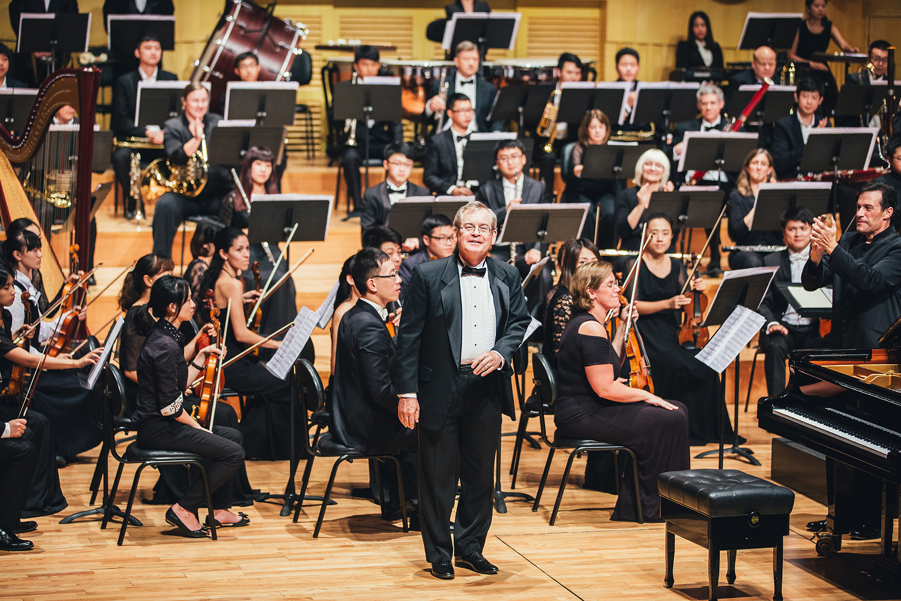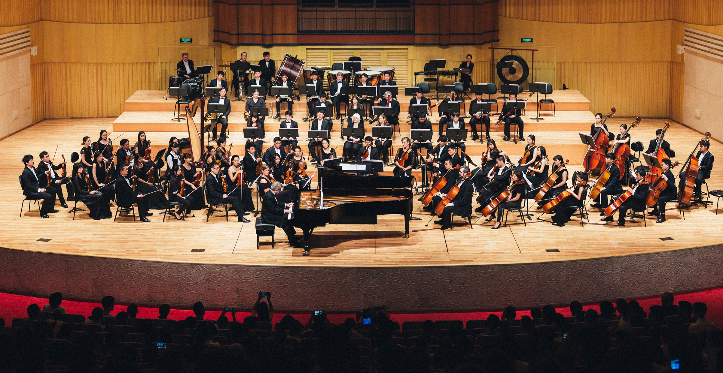 音乐会以伯恩施坦创作的《老实人》序曲拉开了序幕。乔治·格什温的交响曲《蓝色狂想曲》使观众们沉醉在迷人的旋律中,眼前仿佛出现了缤纷多彩的世界;美国钢琴演奏家沃尔特·寇桑德的钢琴独奏表现出了他精湛的演奏技术,他用精致敏感的音乐征服了观众;音乐会在贝多芬的第三交响中圆满拉下了帷幕。本场音乐会彰显了高雅艺术的迷人魅力,展示了郑州师范学院歌剧中心交响乐团与郑州黄河交响乐团扎实的艺术功底和高超的艺术表演能力,他们的表演得到了观众们的一致好评,指挥克利斯朵夫和钢琴伴奏沃尔特.寇桑德的精彩演绎赢得了观众热烈的掌声,四次返场致谢。乐团艺术总监苏文星先生指挥的高难度作品《一千零一夜》(又名《天方夜谭》)第一次在河南演出,引发了观众们的热烈反响。此次系列音乐会为观众们带来了丰富的视听盛宴,满足了他们的精神文化需求,同时我校音乐舞蹈学院的师生在此次系列活动中表演能力和艺术欣赏能力得到了提高,我校歌剧中心交响乐团也在实践学习中得到发展与进步。