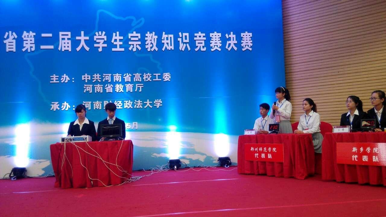 5月8日上午,由省委高校工委、省教育厅主办,河南财经政法大学承办的河南省第二届大学生宗教知识竞赛决赛在河南财经政法大学新校区落下帷幕,包括河南大学、河南师范大学和我校在内的省内十所高校组队参加了此次决赛。