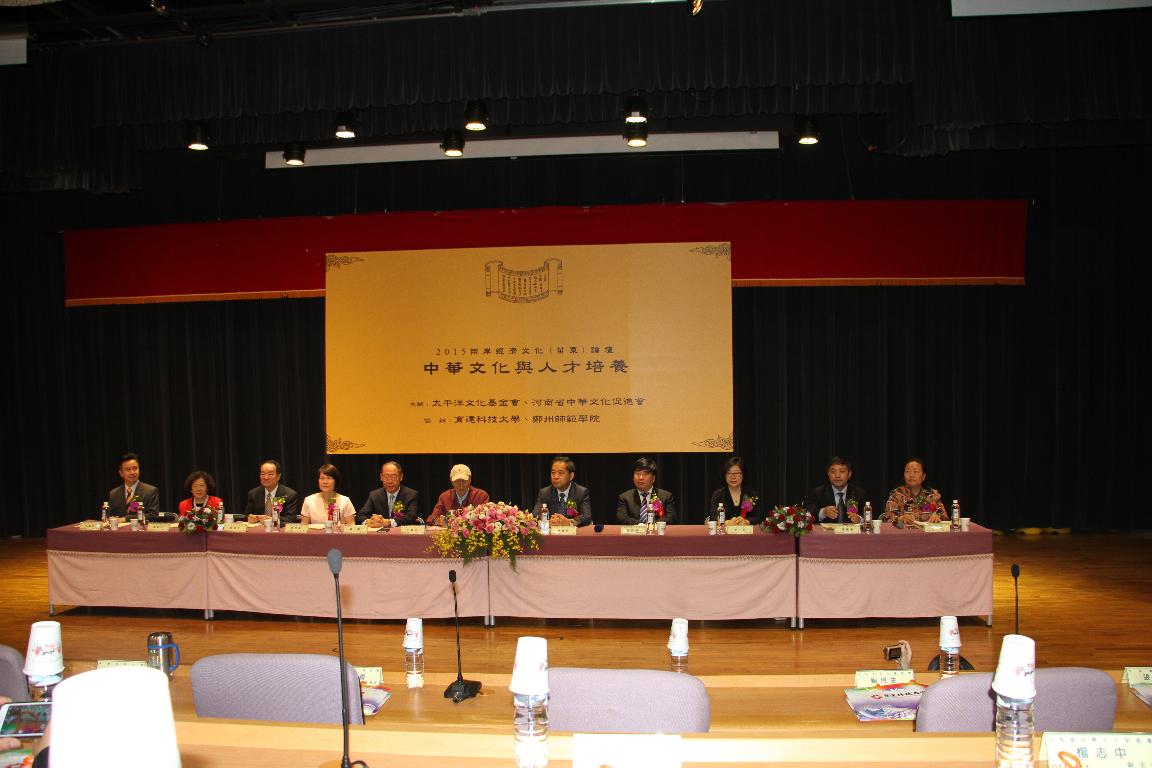 5月14日,由河南省中华文化促进会和台湾太平洋文化基金会主办的两岸经济文化论坛在台湾苗栗育达科技大学举行,台湾知名教育家王光亚、太平洋文化基金会董事长钱复、河南省文化促进会主席陈义初出席并致辞。作为协办方之一,党委书记于向英率团参加该论坛。